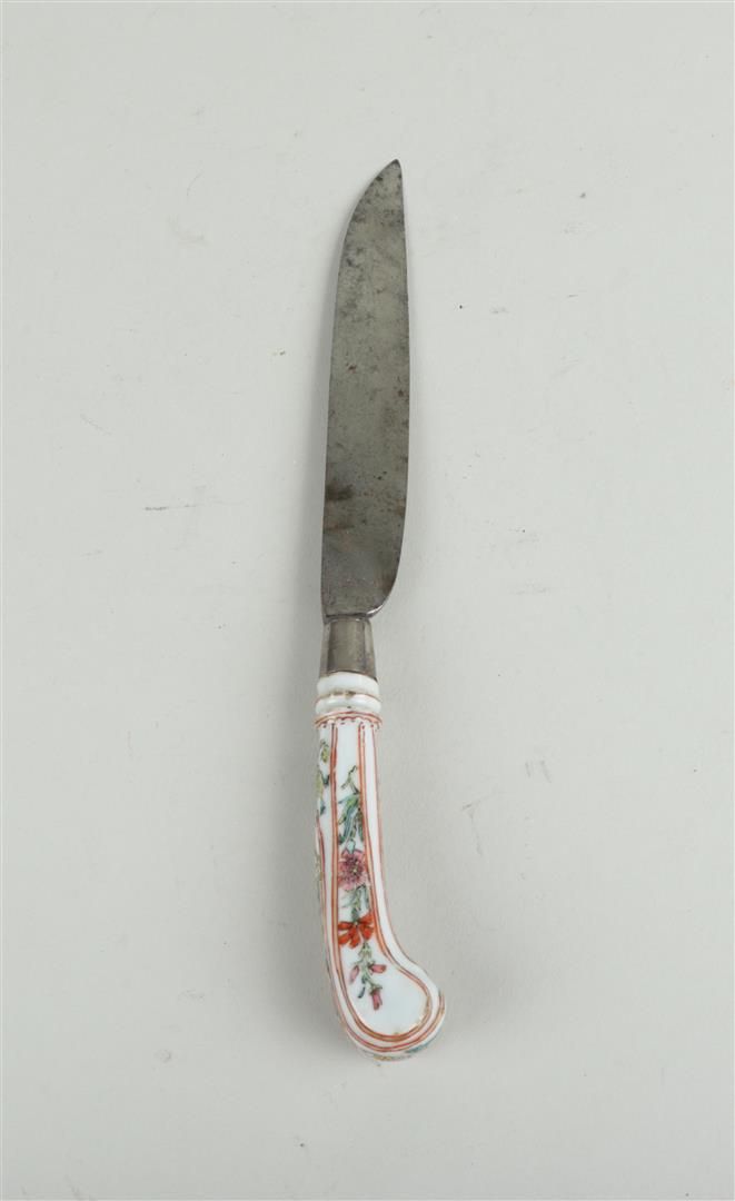 Lotto 317 | A knife with Chinese porcelain handle decorated with floral decoration. 18th...