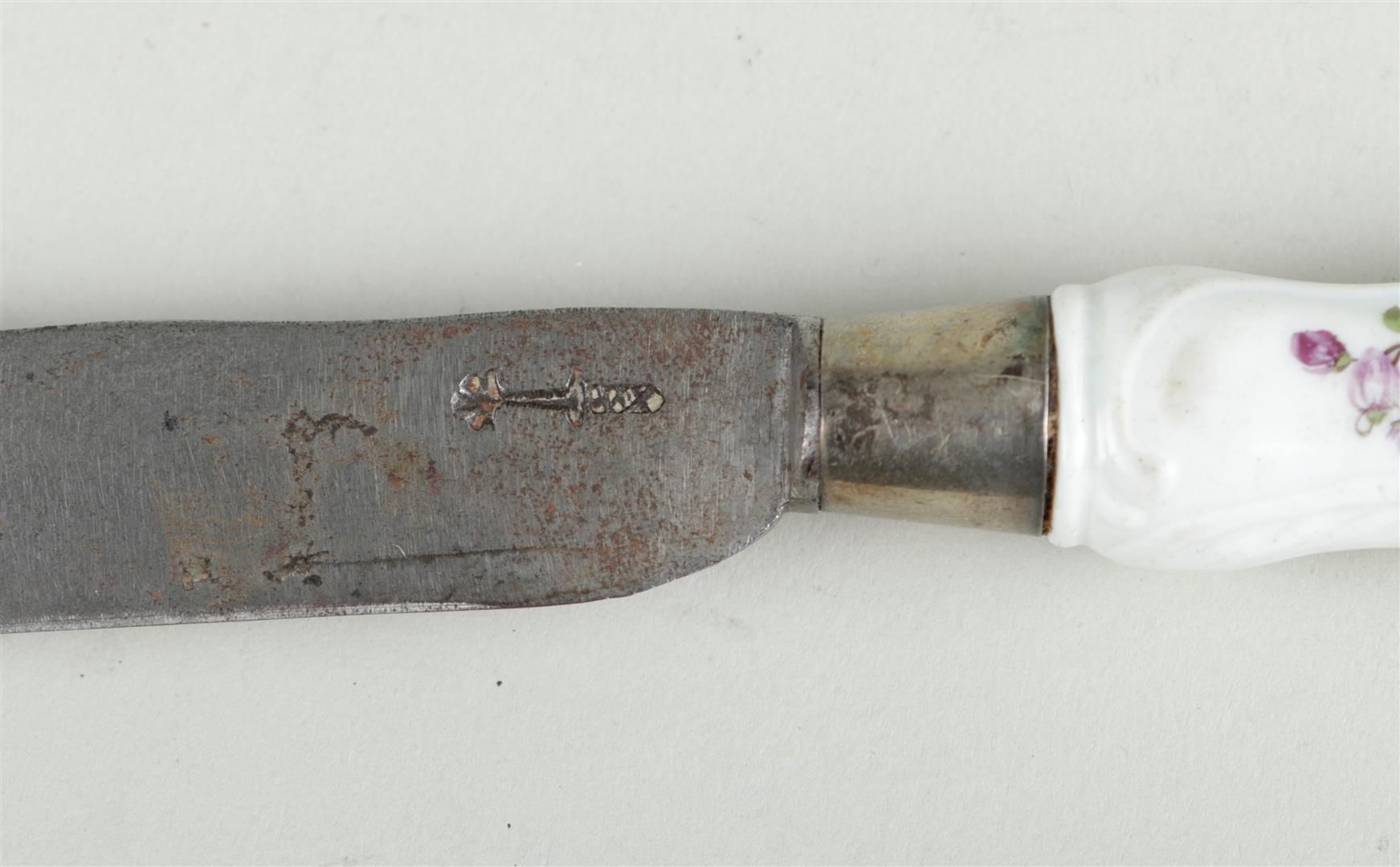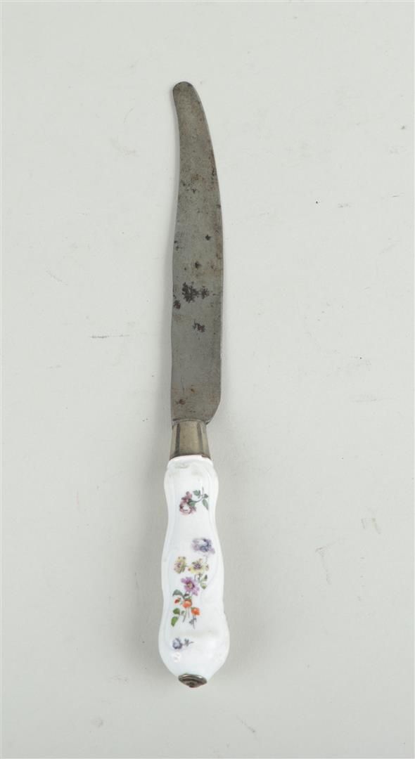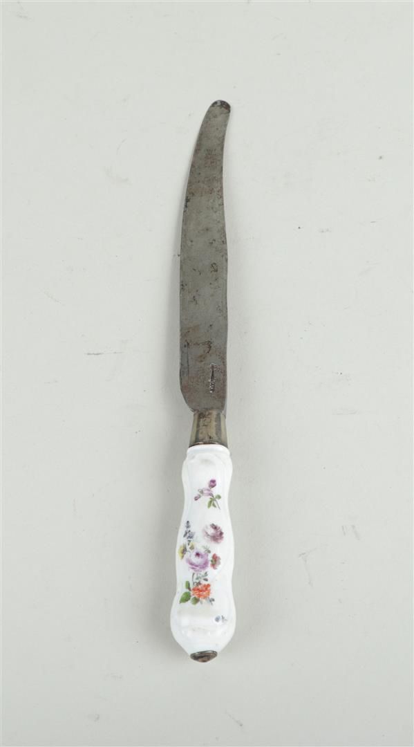 A knife with a Meissen porcelain handle decorated with floral decoration. 18th century.