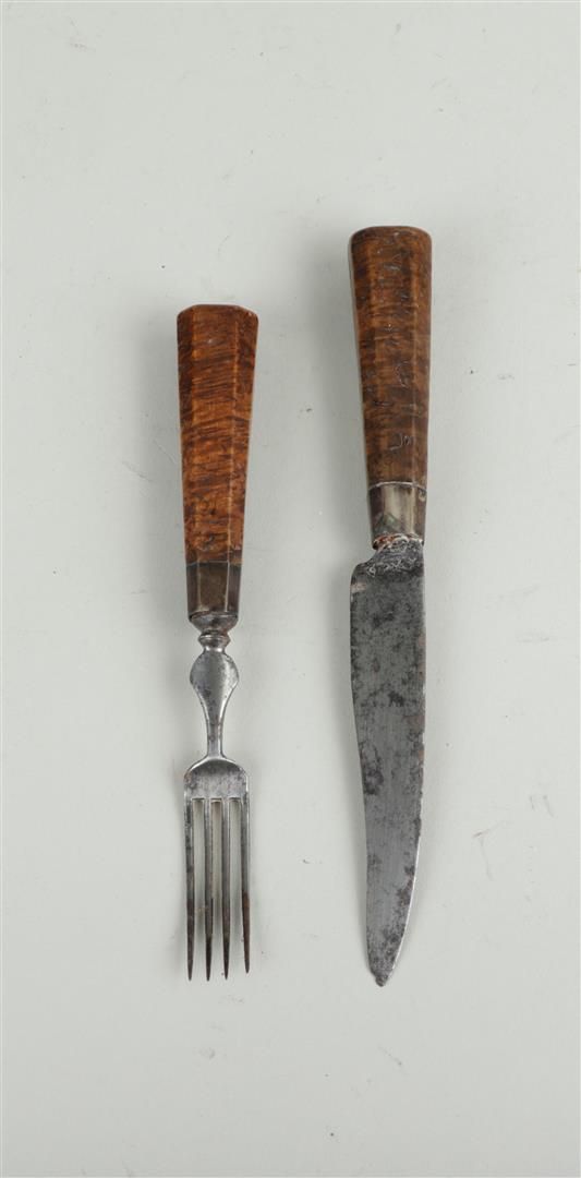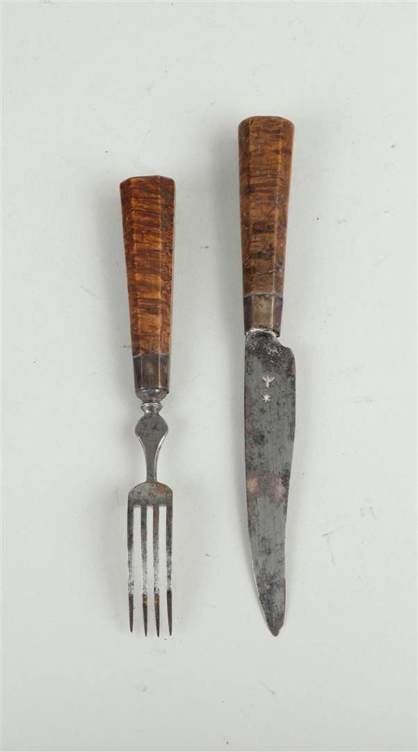 Lotto 322 | An antique Dutch travel cutlery set consisting of a fork and a knife with a...