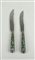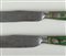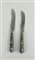 A set of two antique German knives, handles in green tinted horn decorated with silver deer and dogs. Circa 1750.