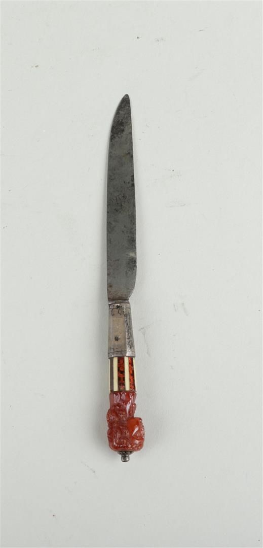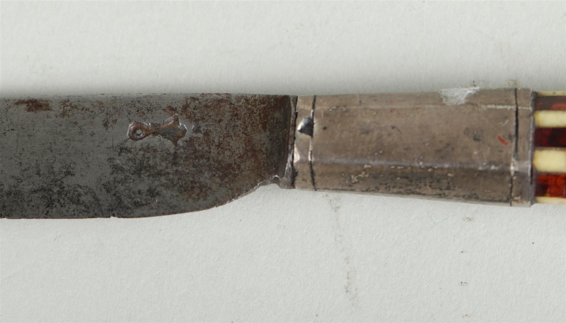 An antique German with worked with bone, amber and silver. Circa 1750. L. 17 cm.