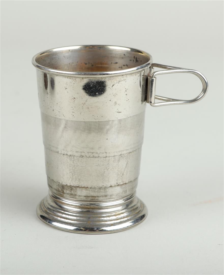 A silver plated folding cup in a leather case. the home insurance company New York.