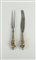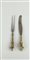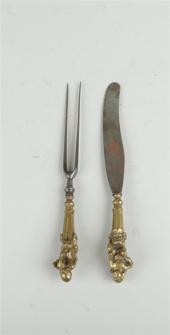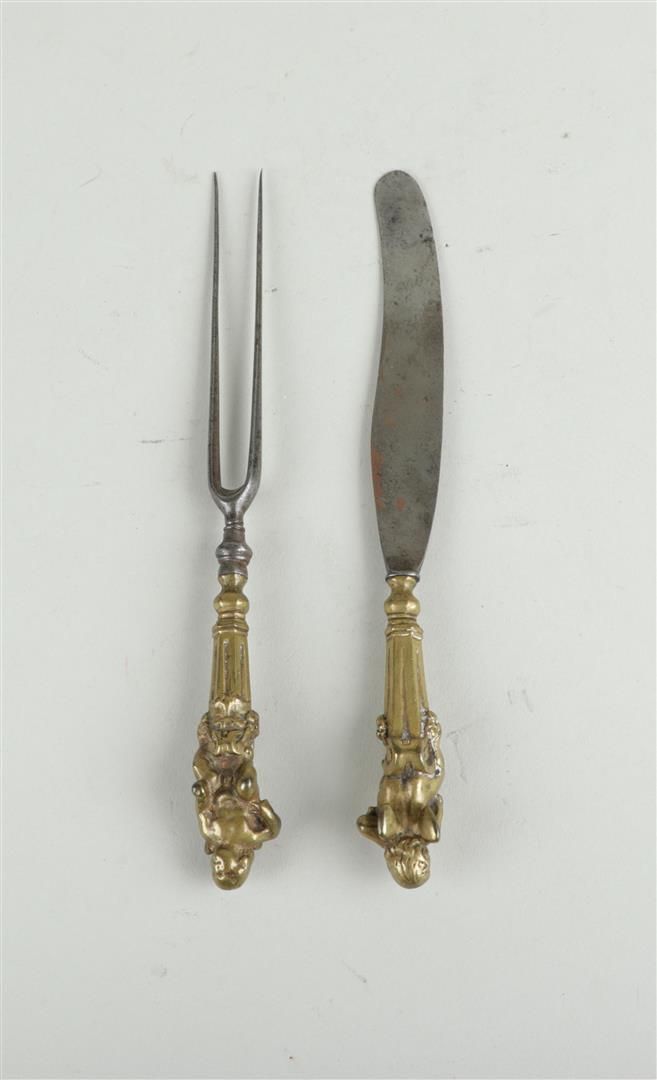 A set of cutlery consisting of a knife and a meat fork, worked with bronze...