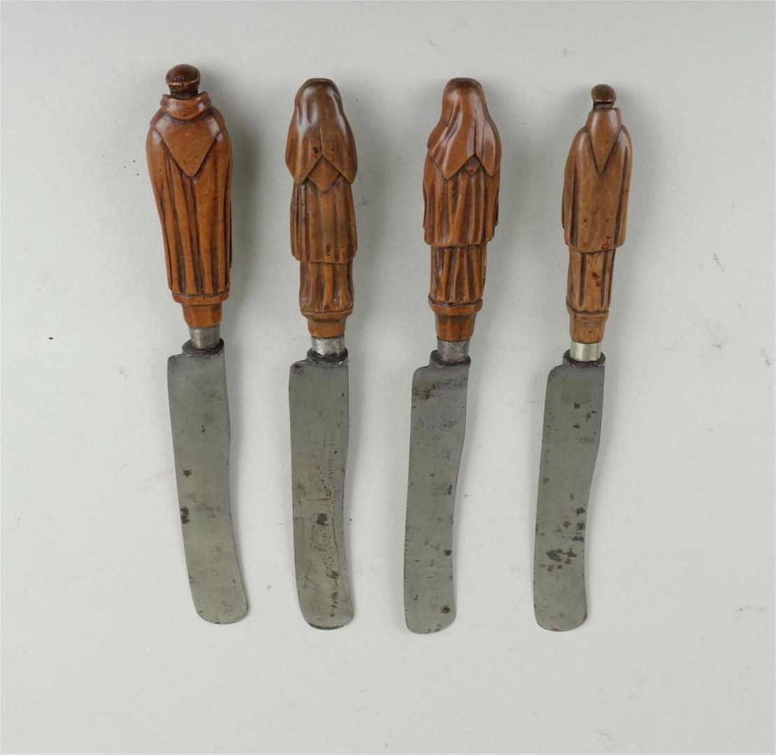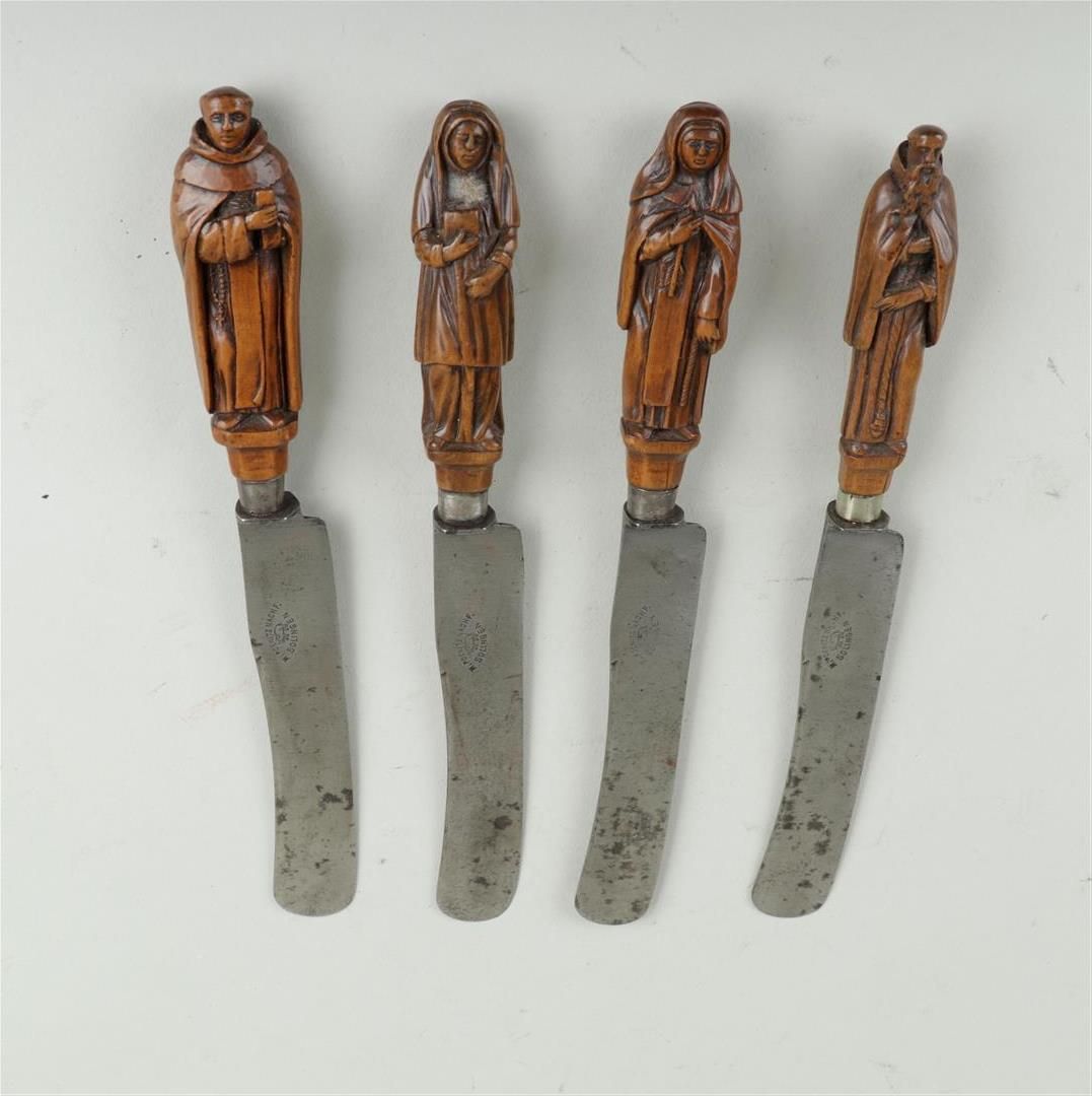 A set of four German 19th century knives with (palm)wood figures of saints....