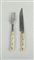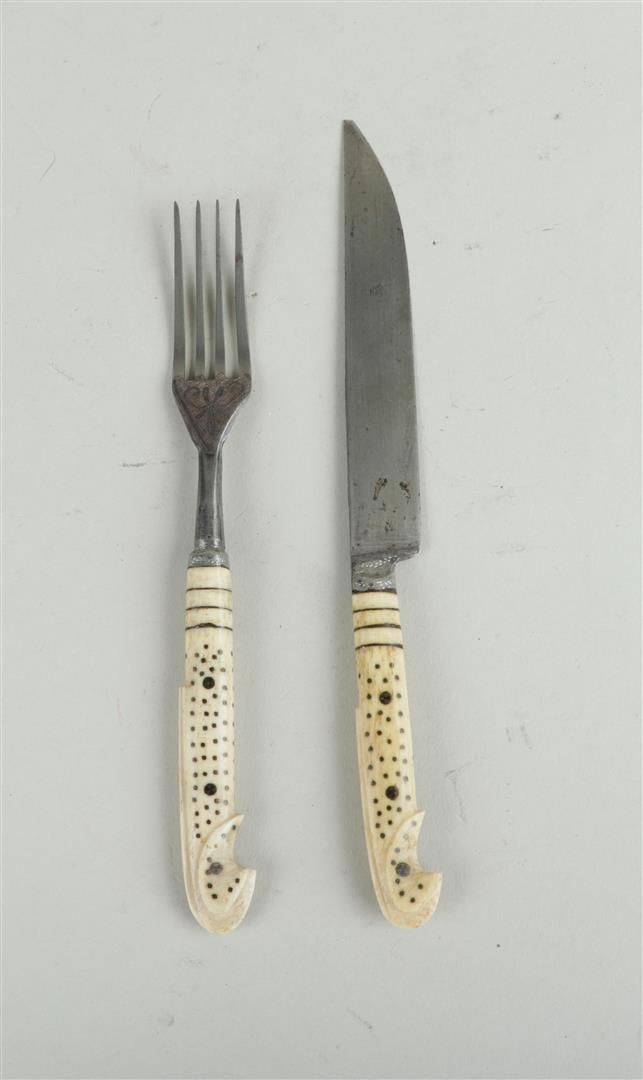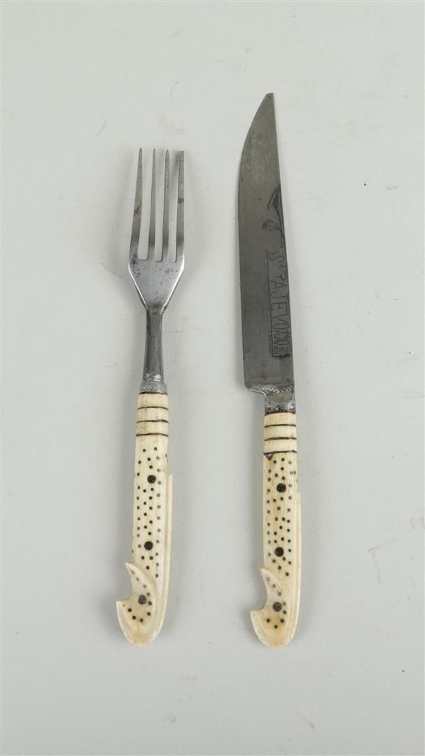 A Bosnian cutlery set with bone handle, silver blade engraved 'Sarajevo 1903'.