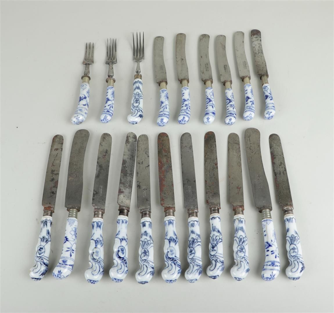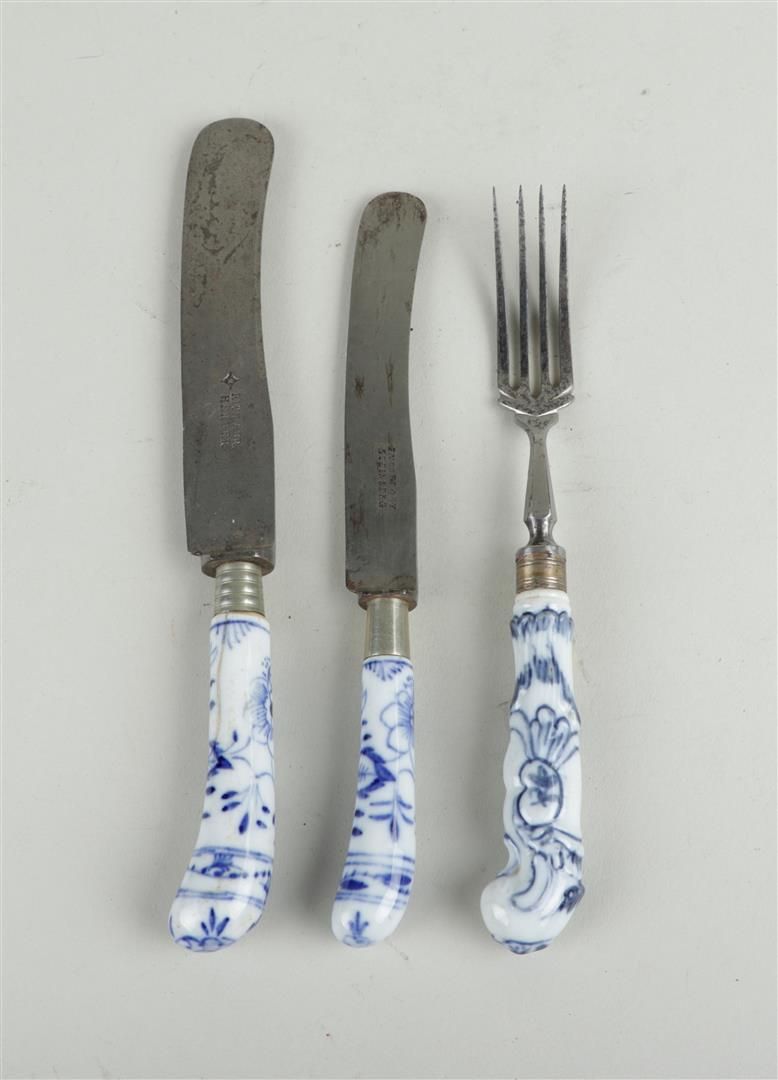 Lotto 367 | A lot of various knives and forks with porcelain handles in zwiebelmuster...