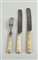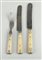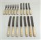 A cutlery set consisting of forks and knives with bone handles, circa 1900.