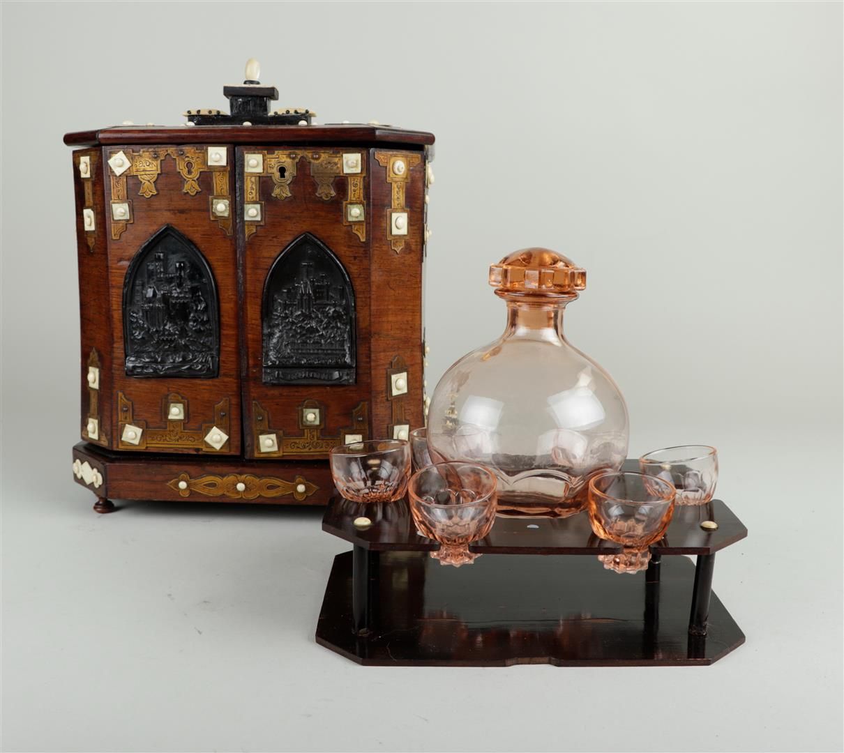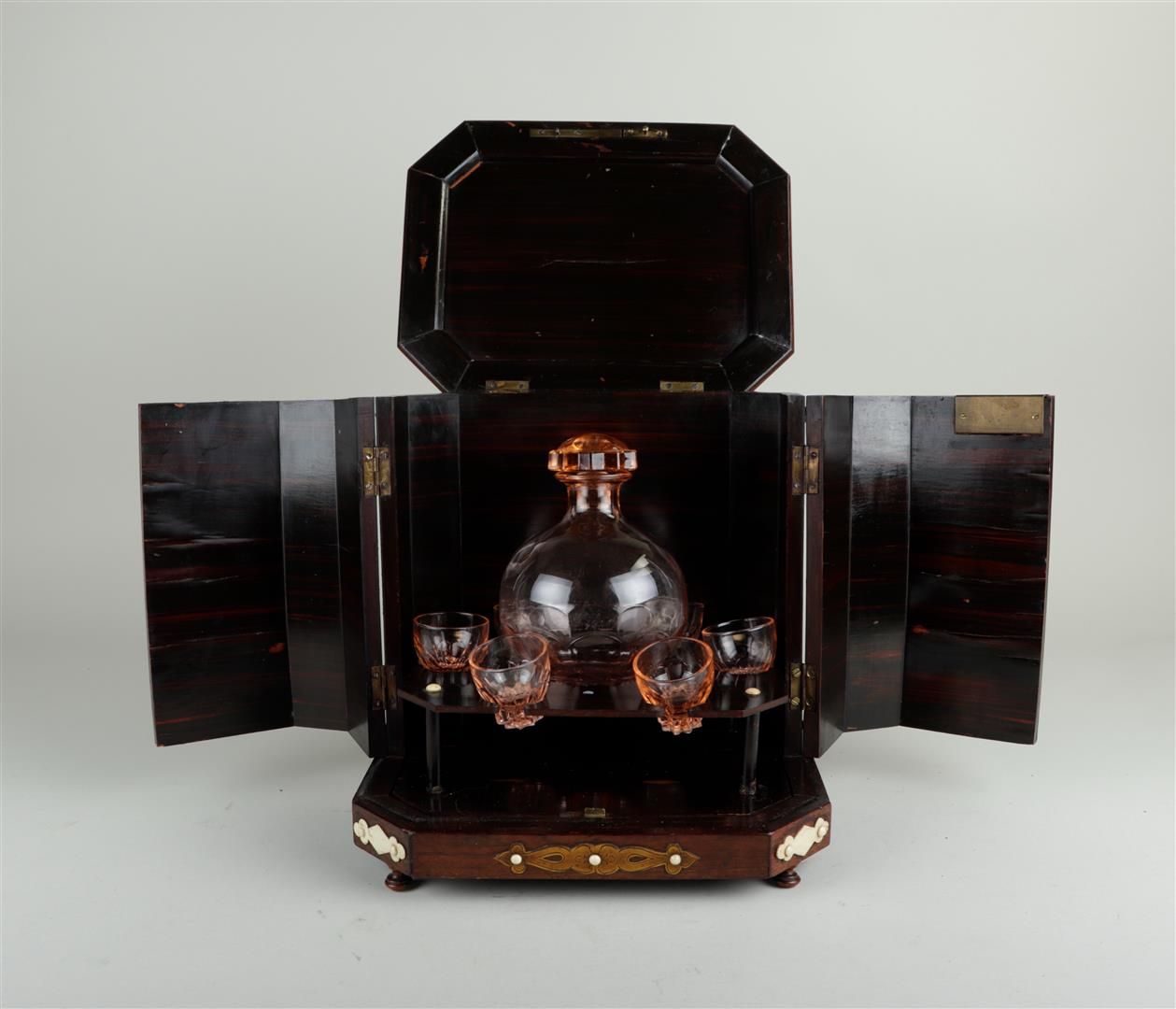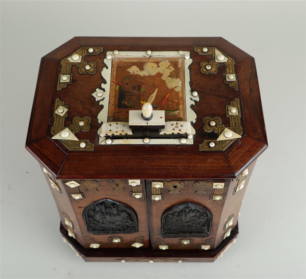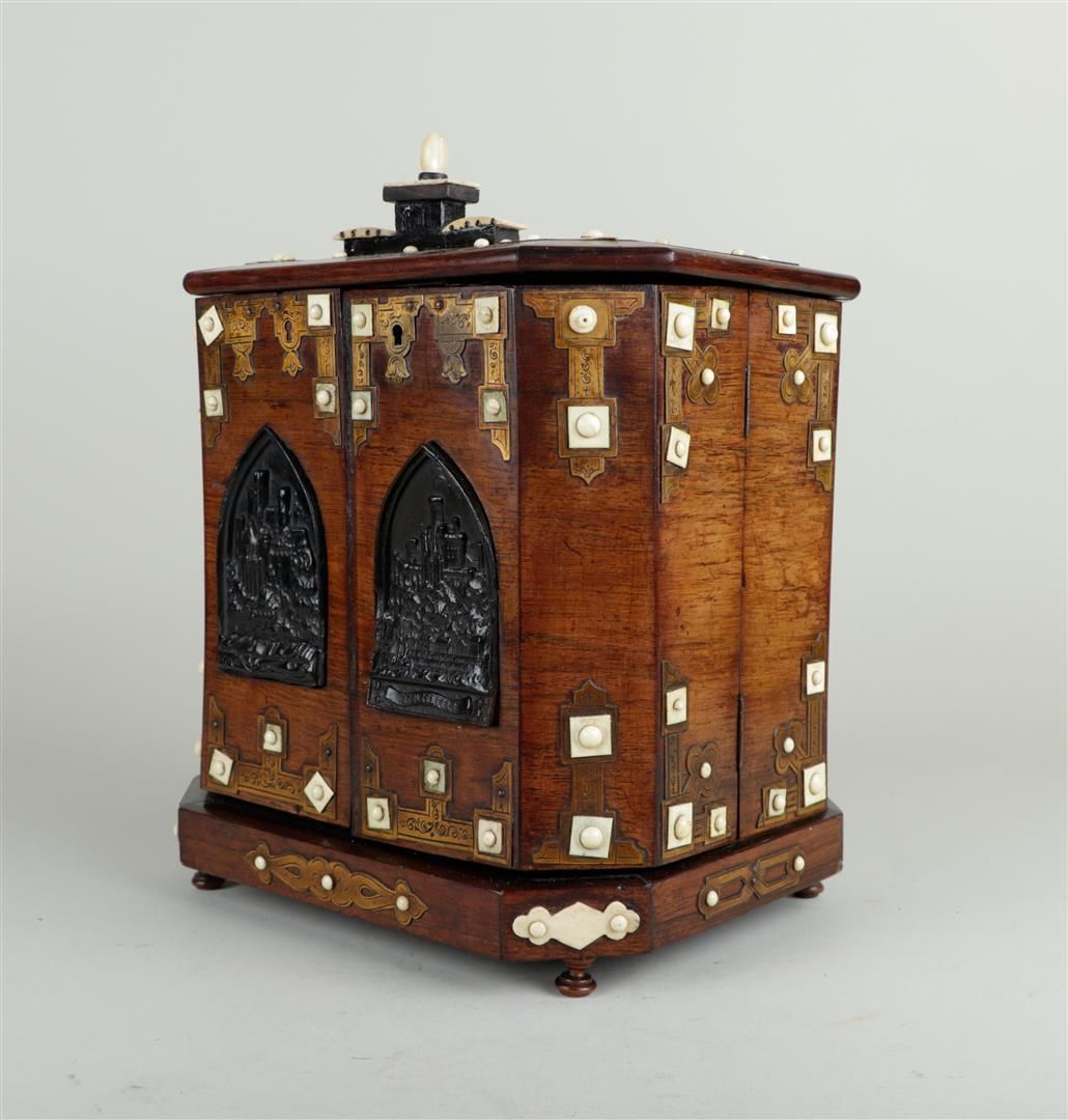 A wooden liquor cellar worked with brass and bone. Germany, 19th century.