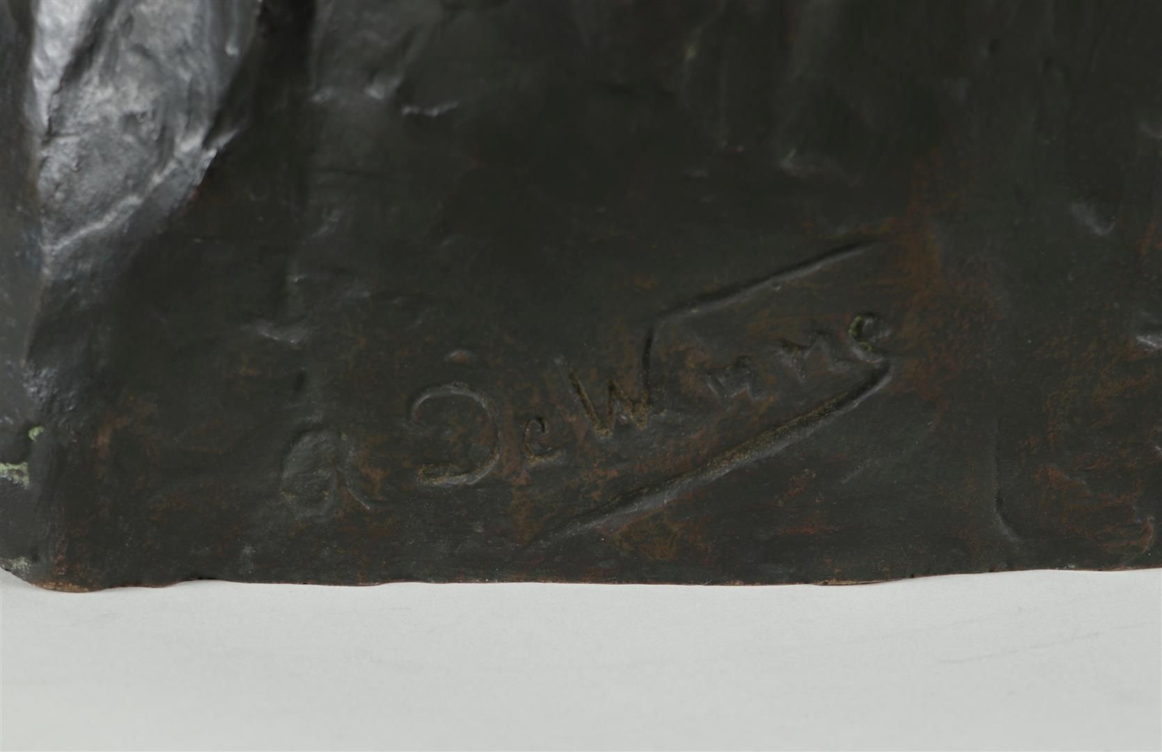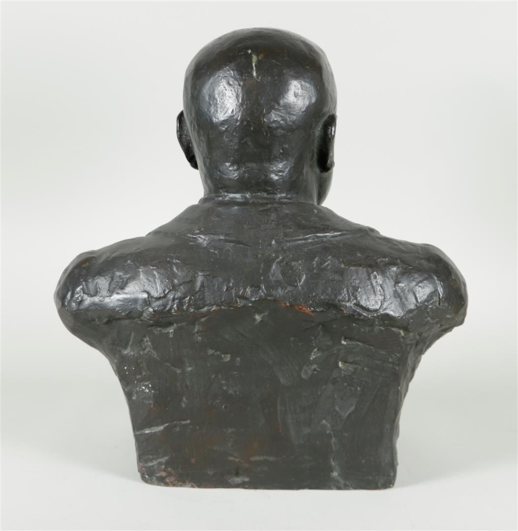 Belgian School, ca. 1920. A darkly apron portrait bust of the writer August de van de Winne (Brussels 1861 - 1935 Genval). Van de Vinne wrote the book "Door Poor Vlaanderen". Annotated with name of sitter (right side).