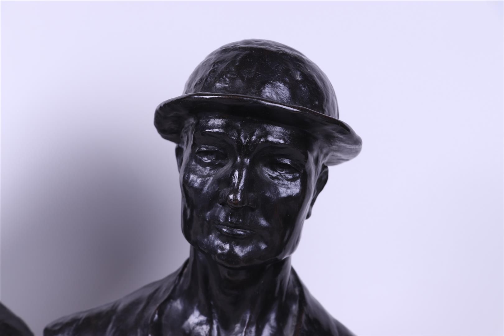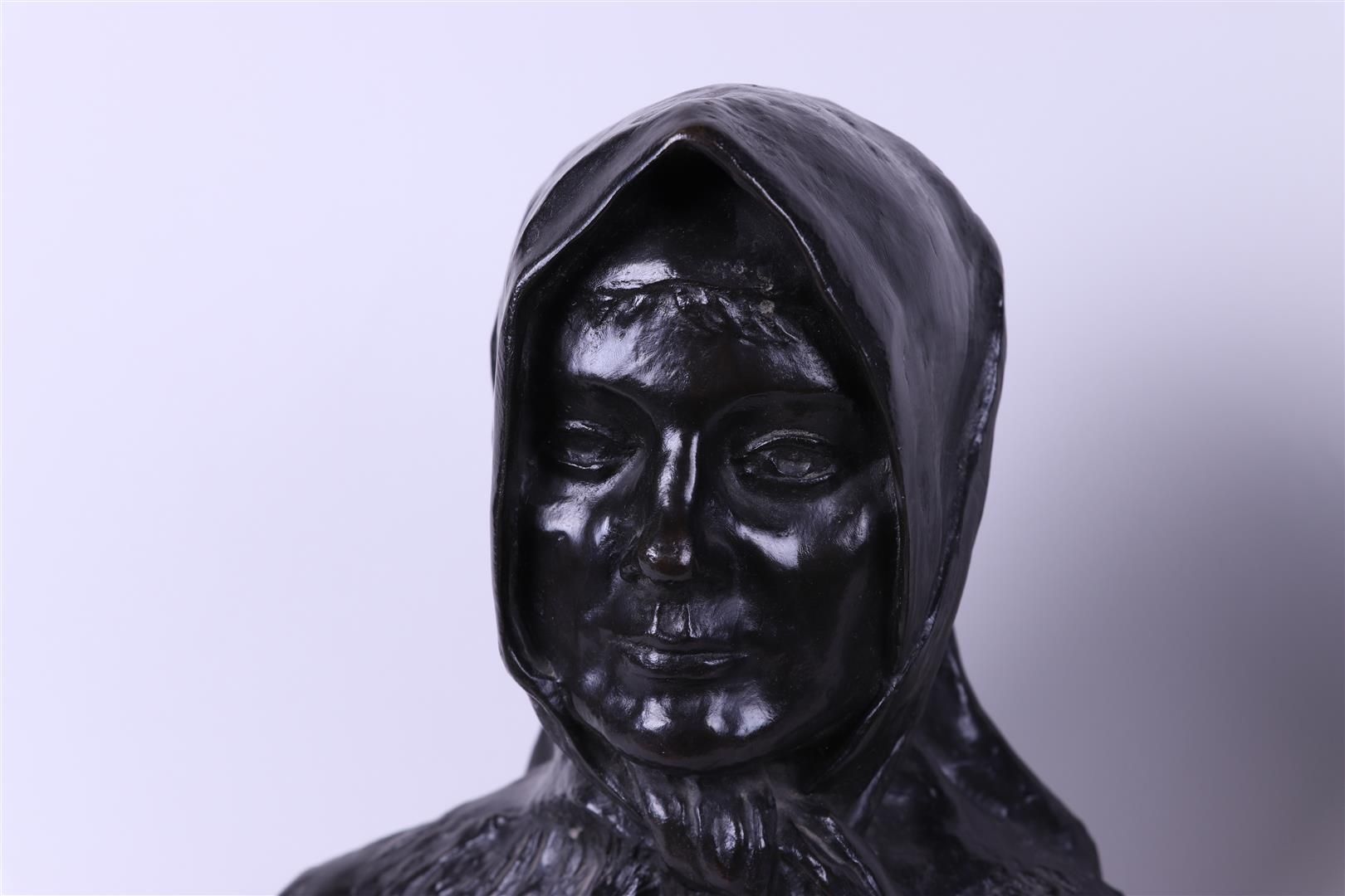 A set of (2) dark patinated bronze busts of a dome and his wife. Belgium, first half of the 20th century.