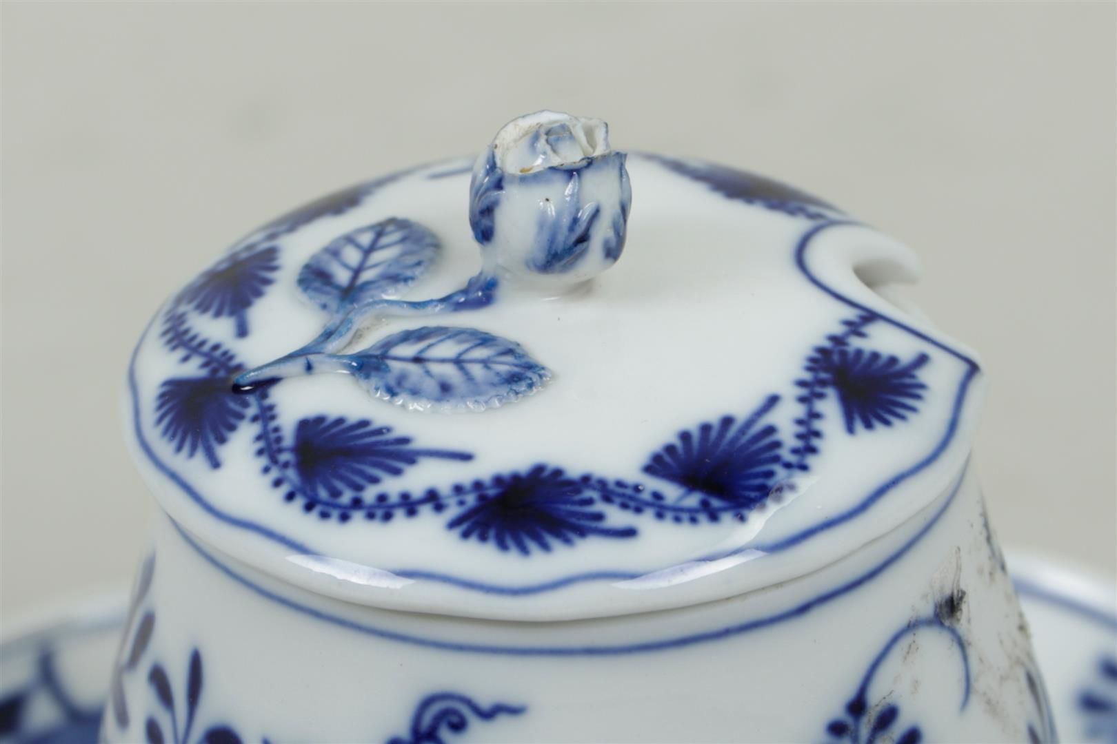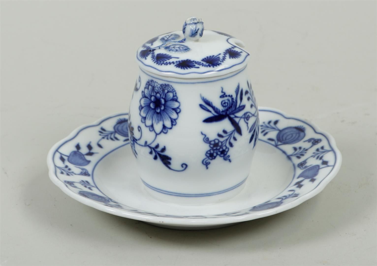 Lotto 1005 | A porcelain mustard pot with zwiebelmuster decoration. Meissen, 20th...