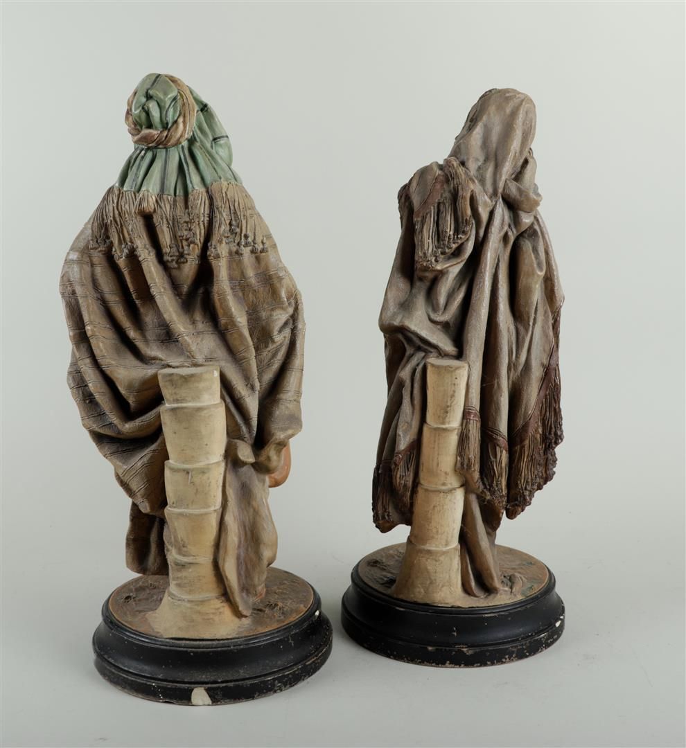 A set of two plaster polychrome painted statues of Arab figures, marked BB on...