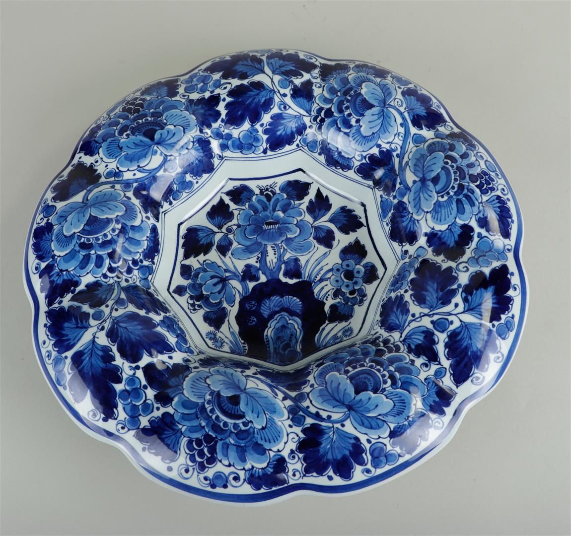 Lotto 1023 | A large golobed earthenware dish with floral decoration. De porceleyne fles...