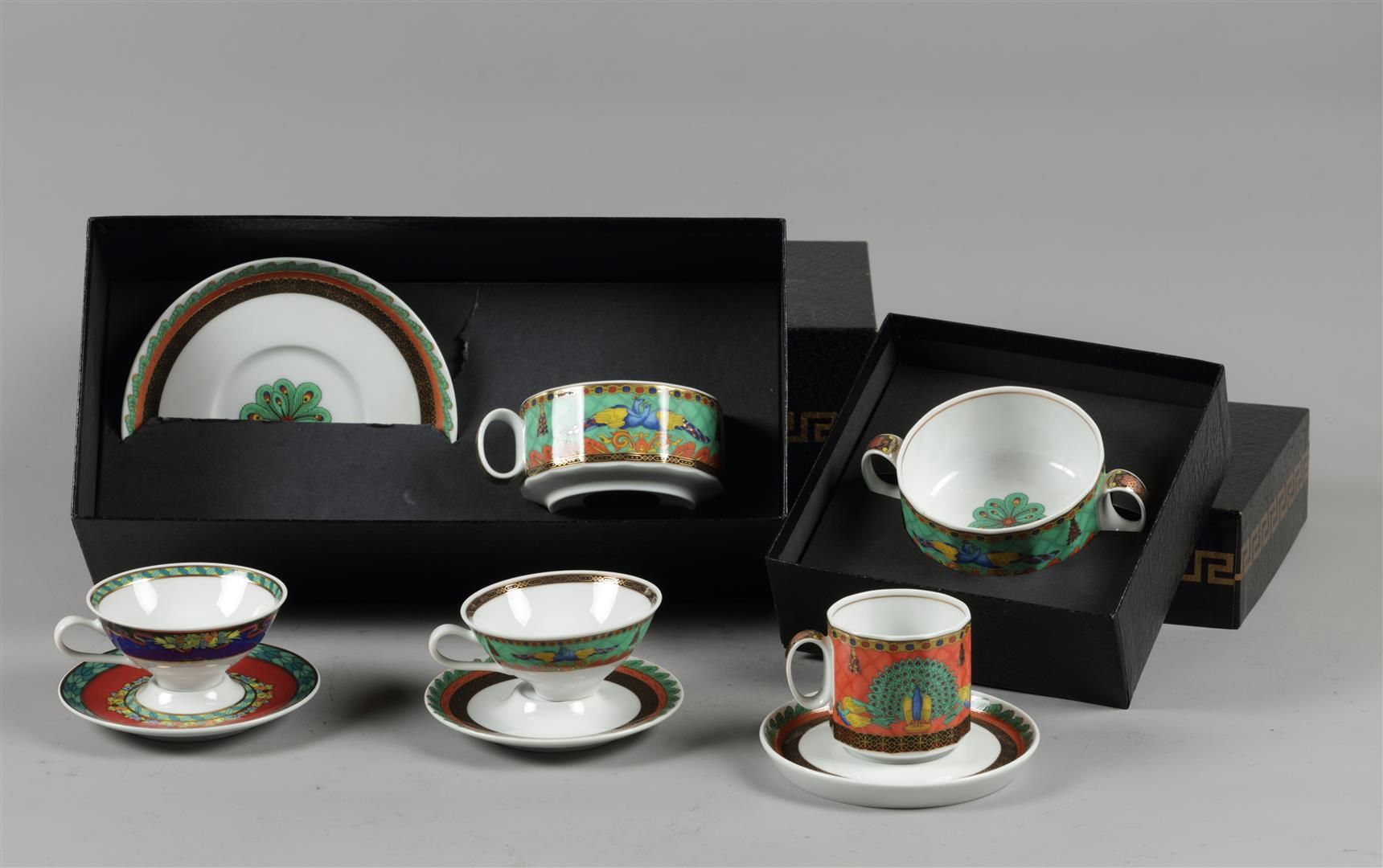A lot of porcelain cup and saucers with Voyage de Marco Polo decor, Rosenthal for Versace. Germany, late 20th century.