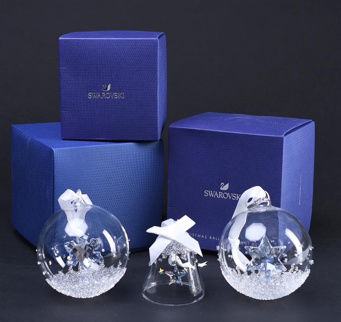 Swarovski, lot of three Christmas ornaments. 5453636, 5464882 & 5059023. In...