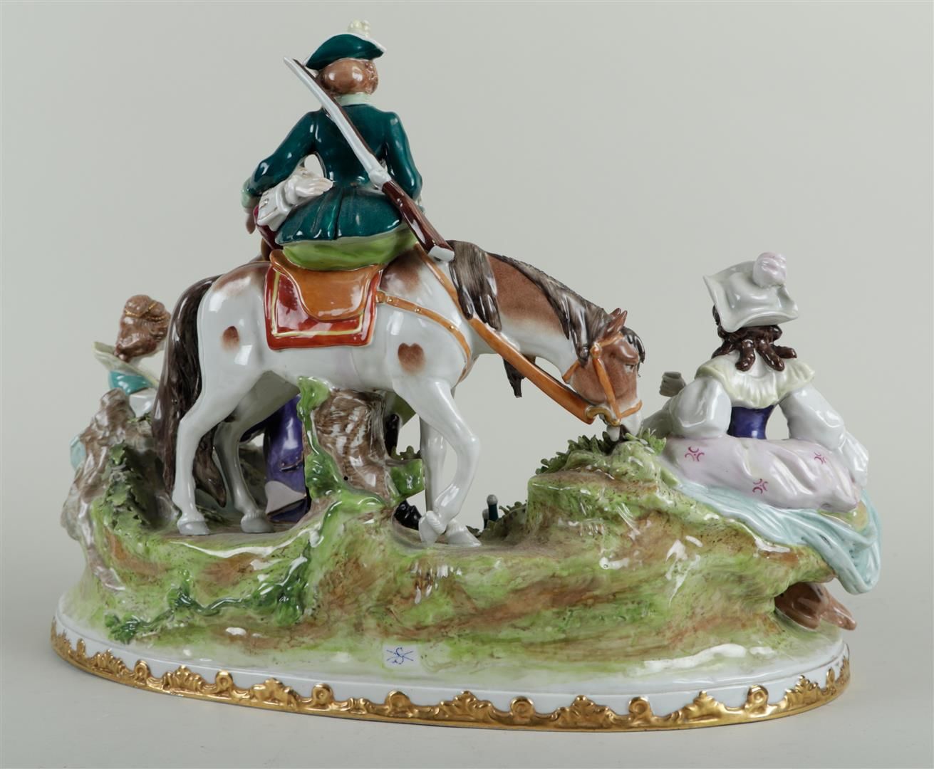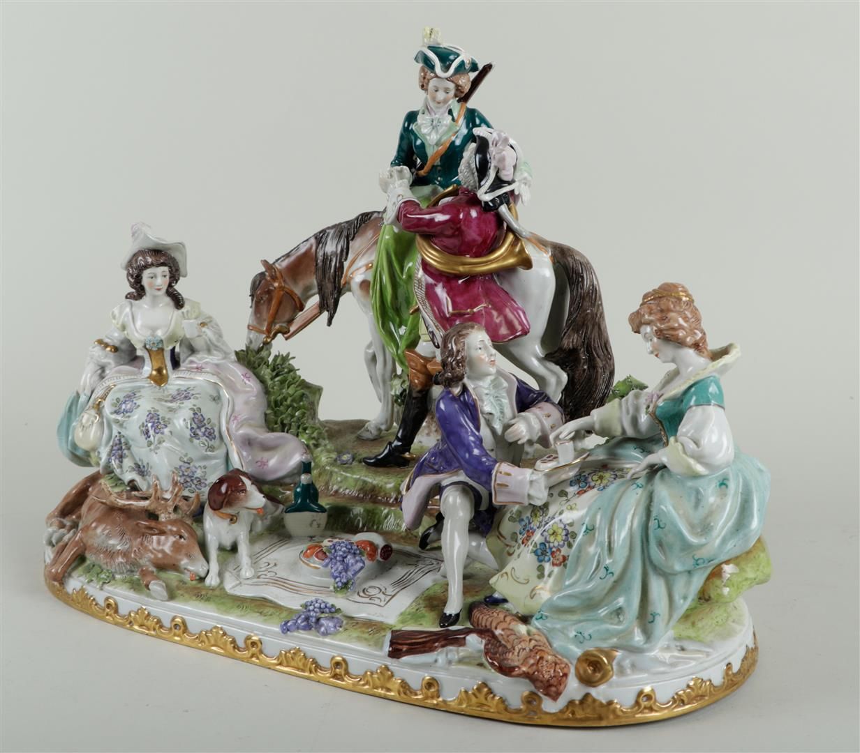 A large porcelain group depicting various classical scenes, marked Sitzendorf. Dresden, 1st half 20th century.