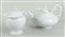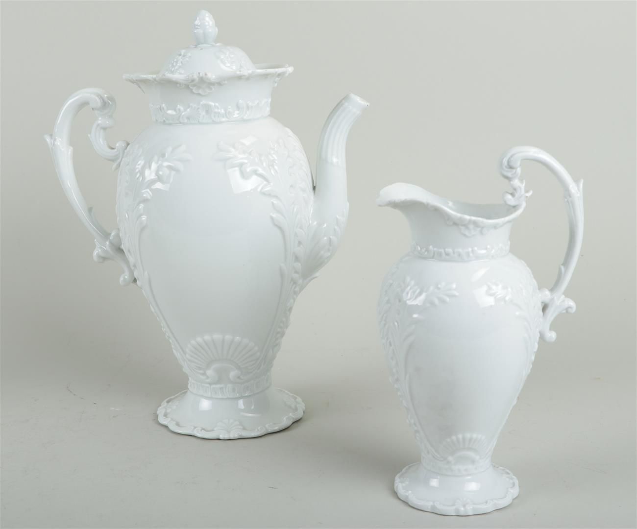 A white porcelain service with relief consisting of a coffee pot, tea pot,...