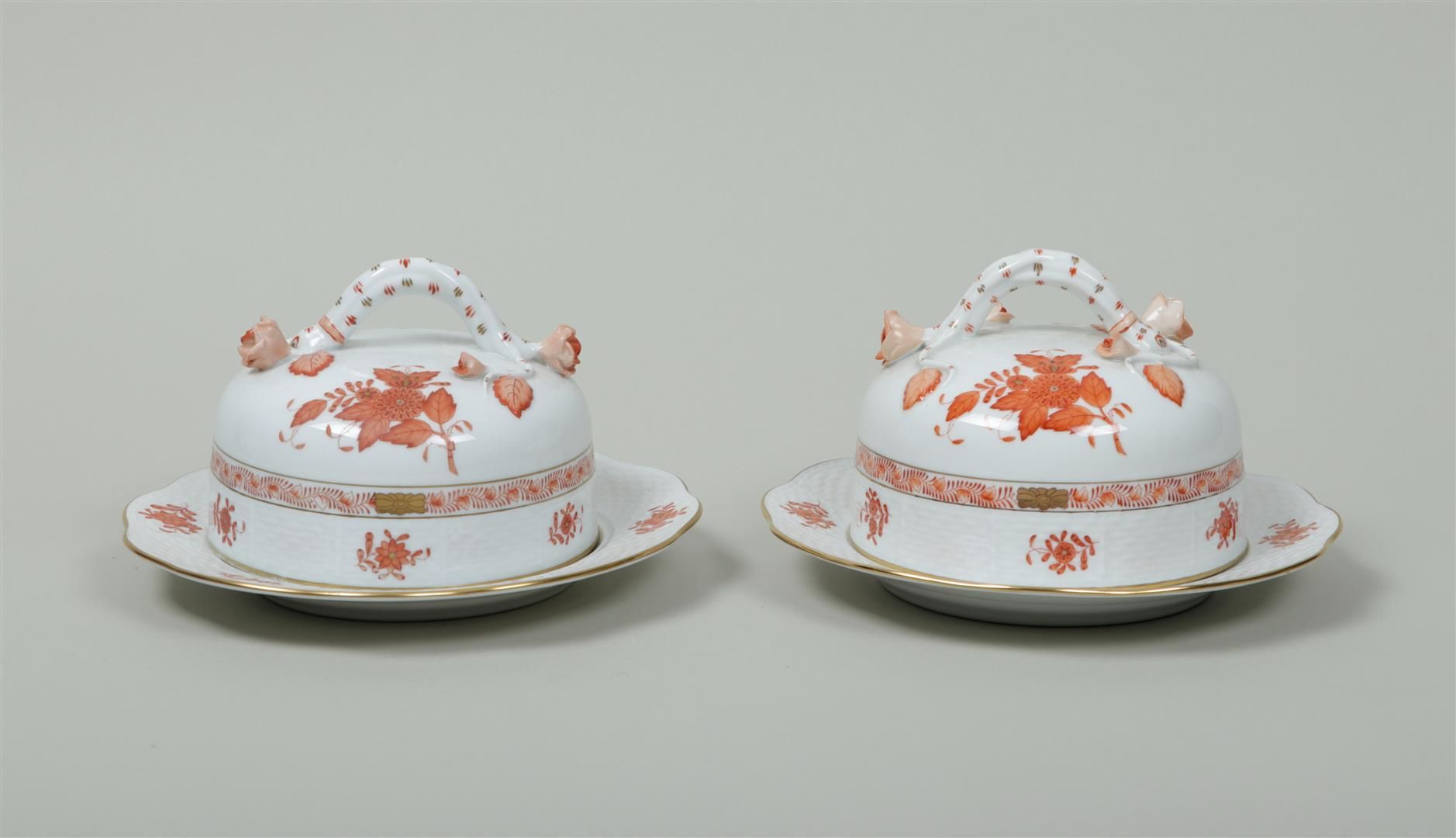 A set of two butter dishes in Apponyi orange decor. Herend, 20th...