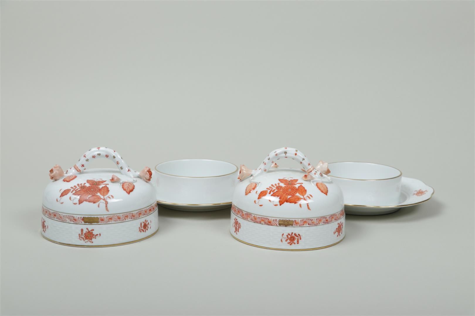 A set of two butter dishes in Apponyi orange decor. Herend, 20th century.