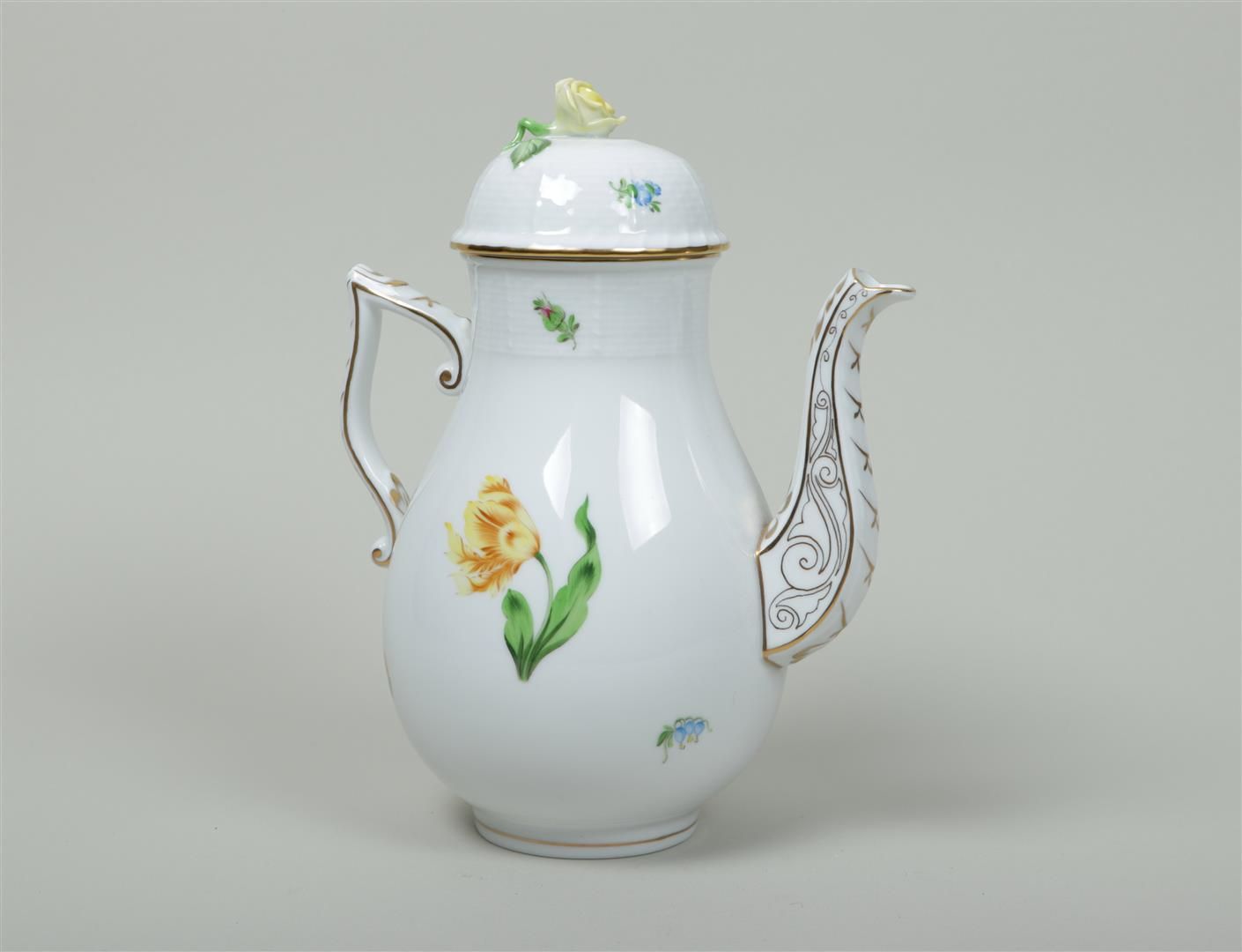 Lotto 1092 | A porcelain coffee pot with floral decoration. Herend, 20th century.H. 24 cm.