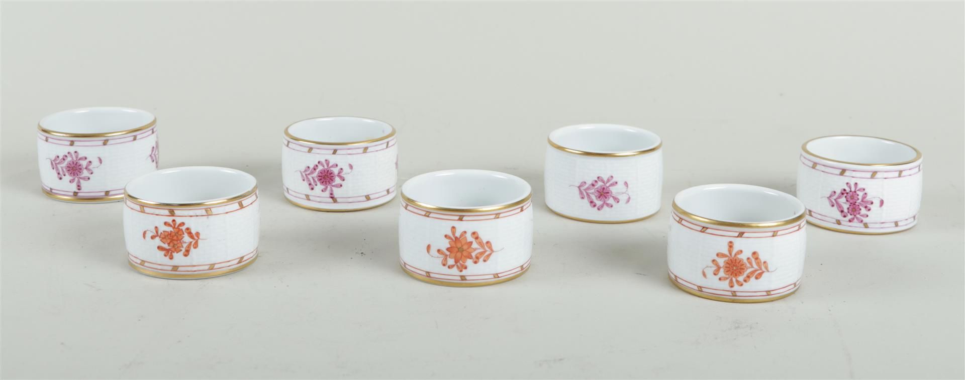 Lotto 1106 | Lot of seven napkin rings in Apponyipink & orange decor. Herend, 20th century.