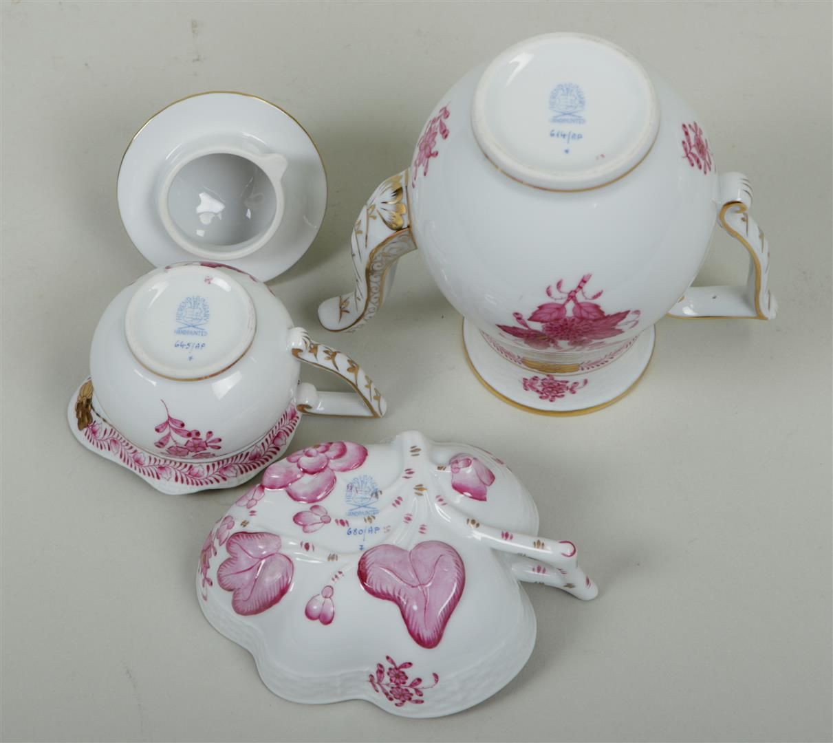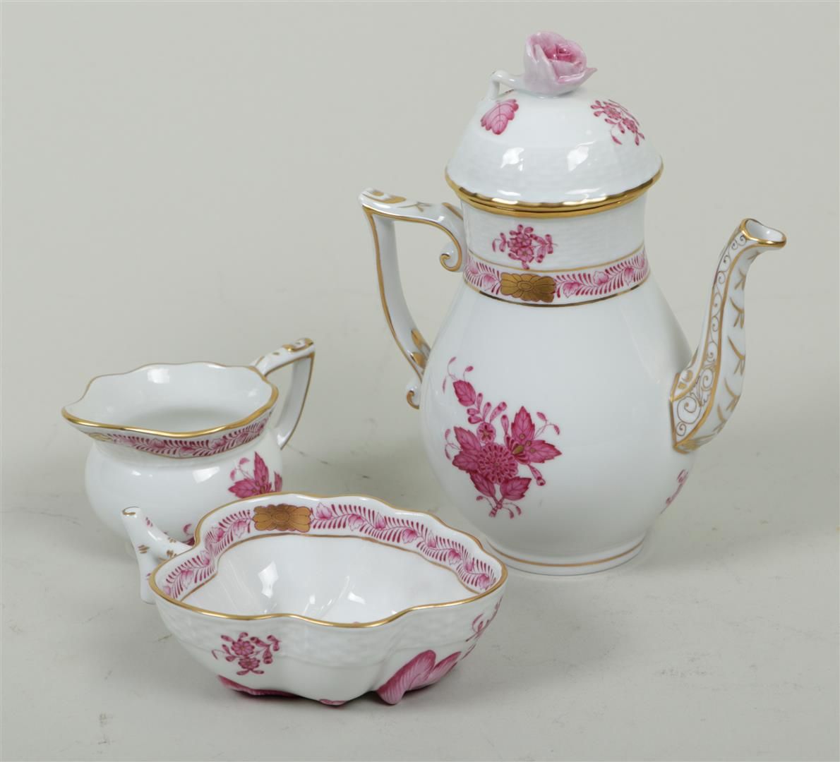 A porcelain coffee pot and cream set in Apponyipink decor. Herend, 20th century.