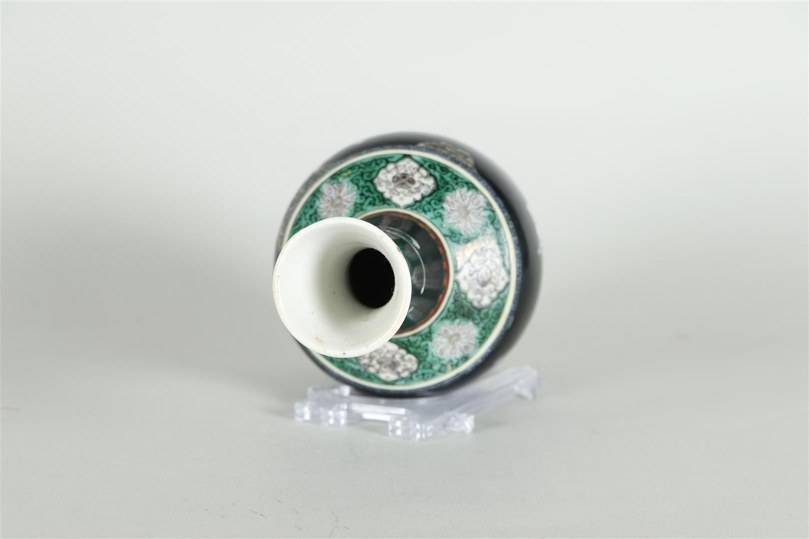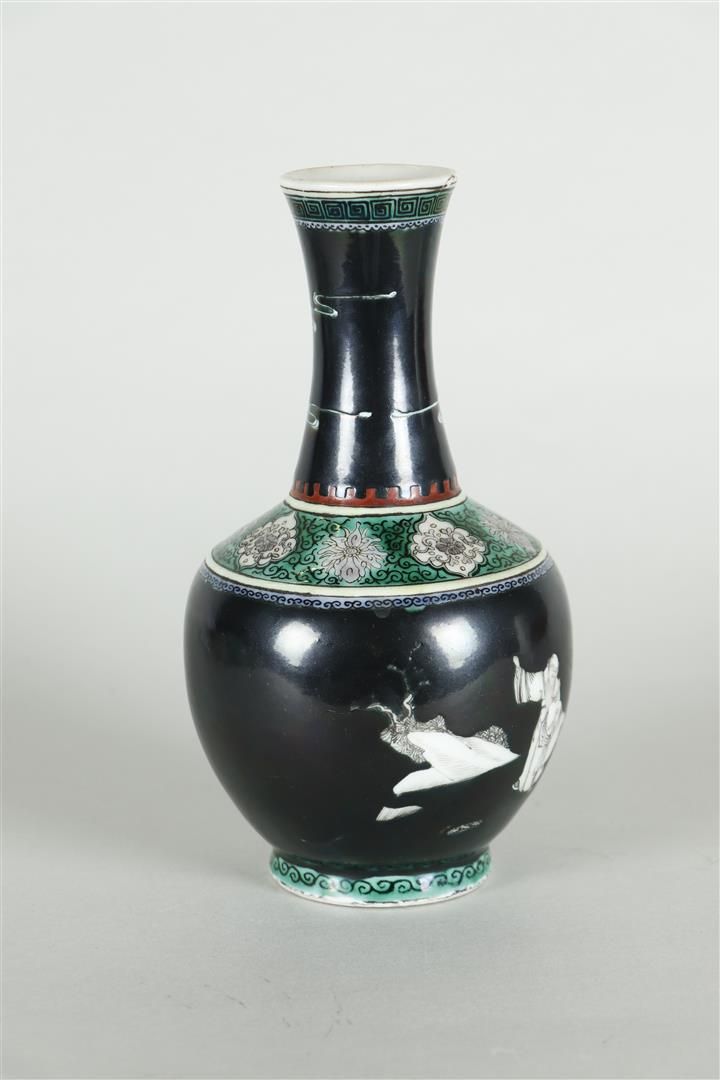 A porcelain Famille Noire and Famille verte vase with decoration of figures...