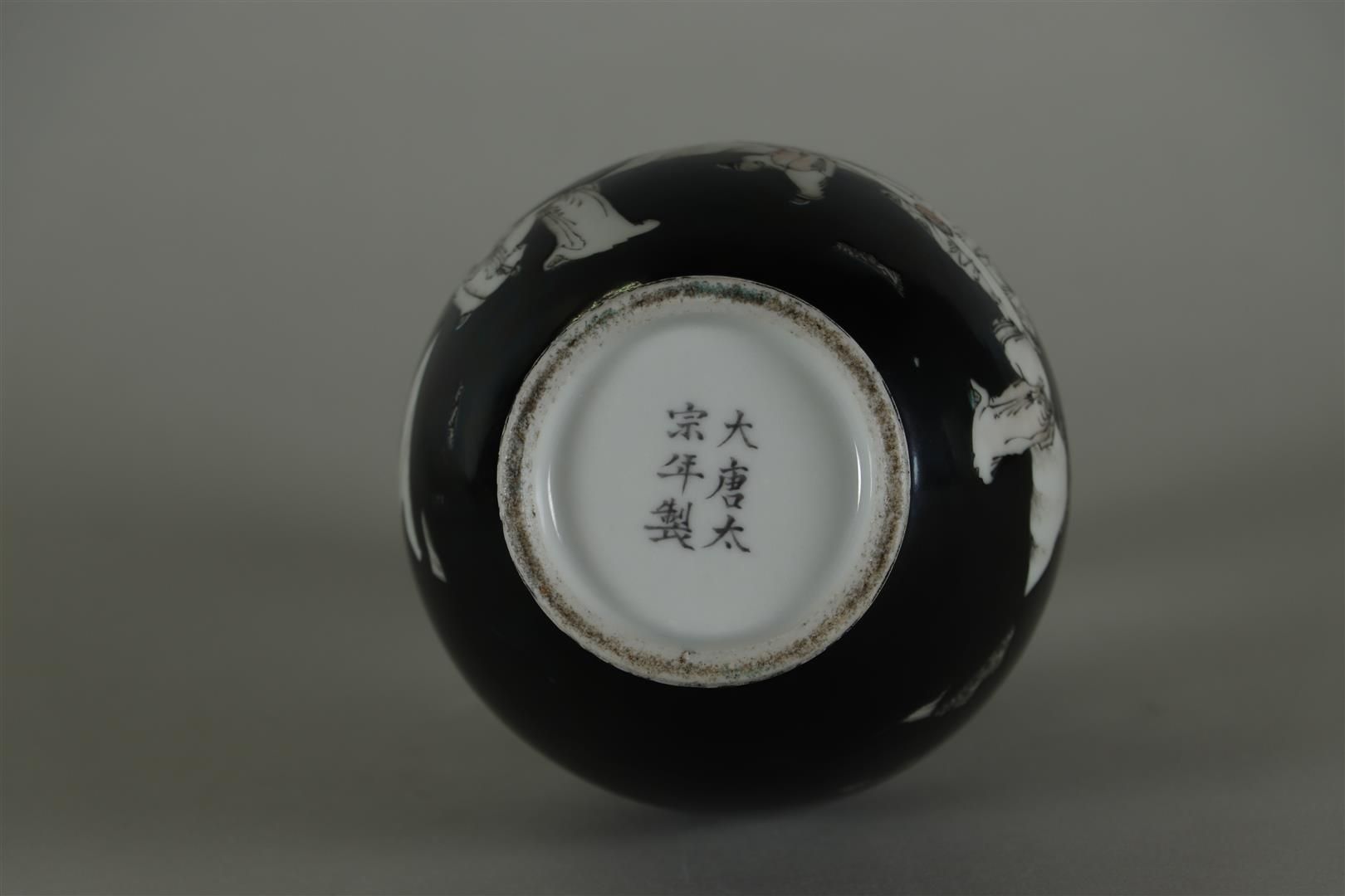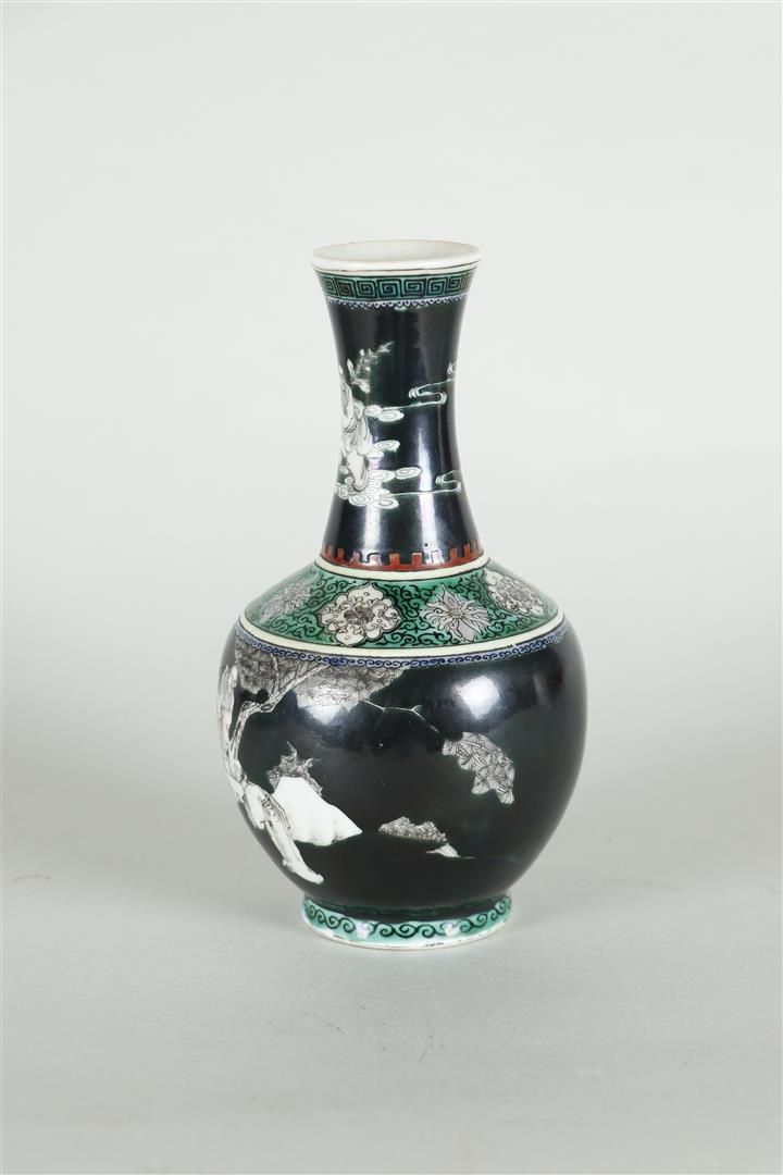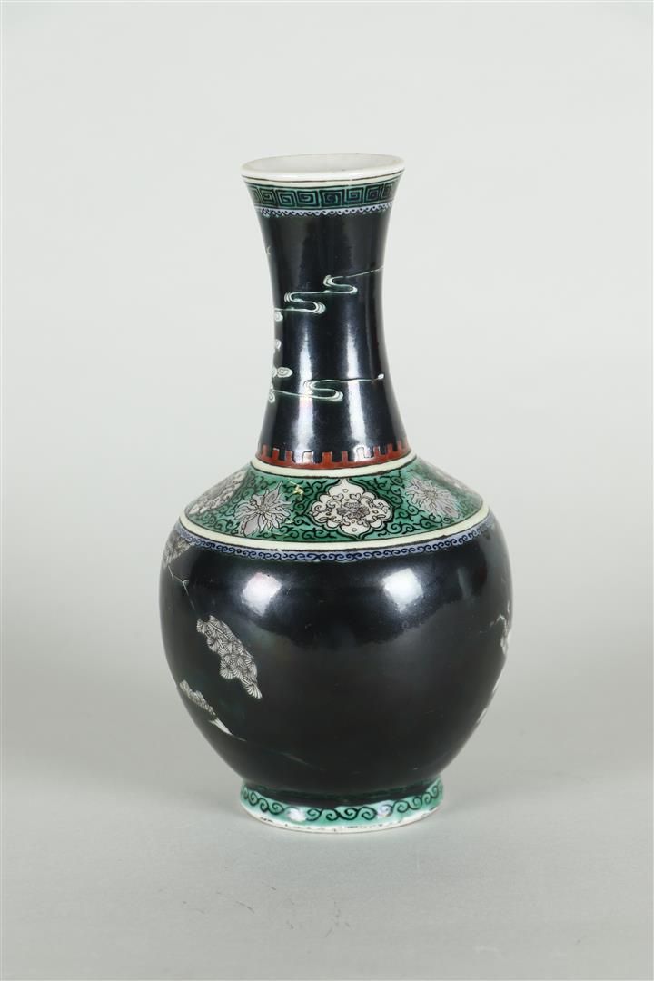 A porcelain Famille Noire and Famille verte vase with decoration of figures and clouds and floral motifs, marked Tang?. China, 19th century.