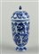 A porcelain bell-shaped covered vase with floral decoration in borders. China, Kangxi.