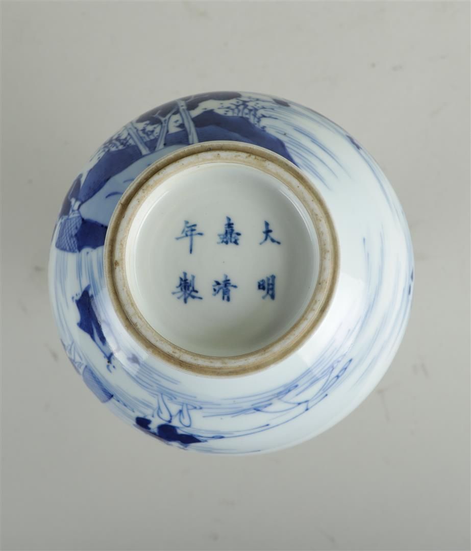 A porcelain vase decorated with figures in a landscape, marked Jiajing....