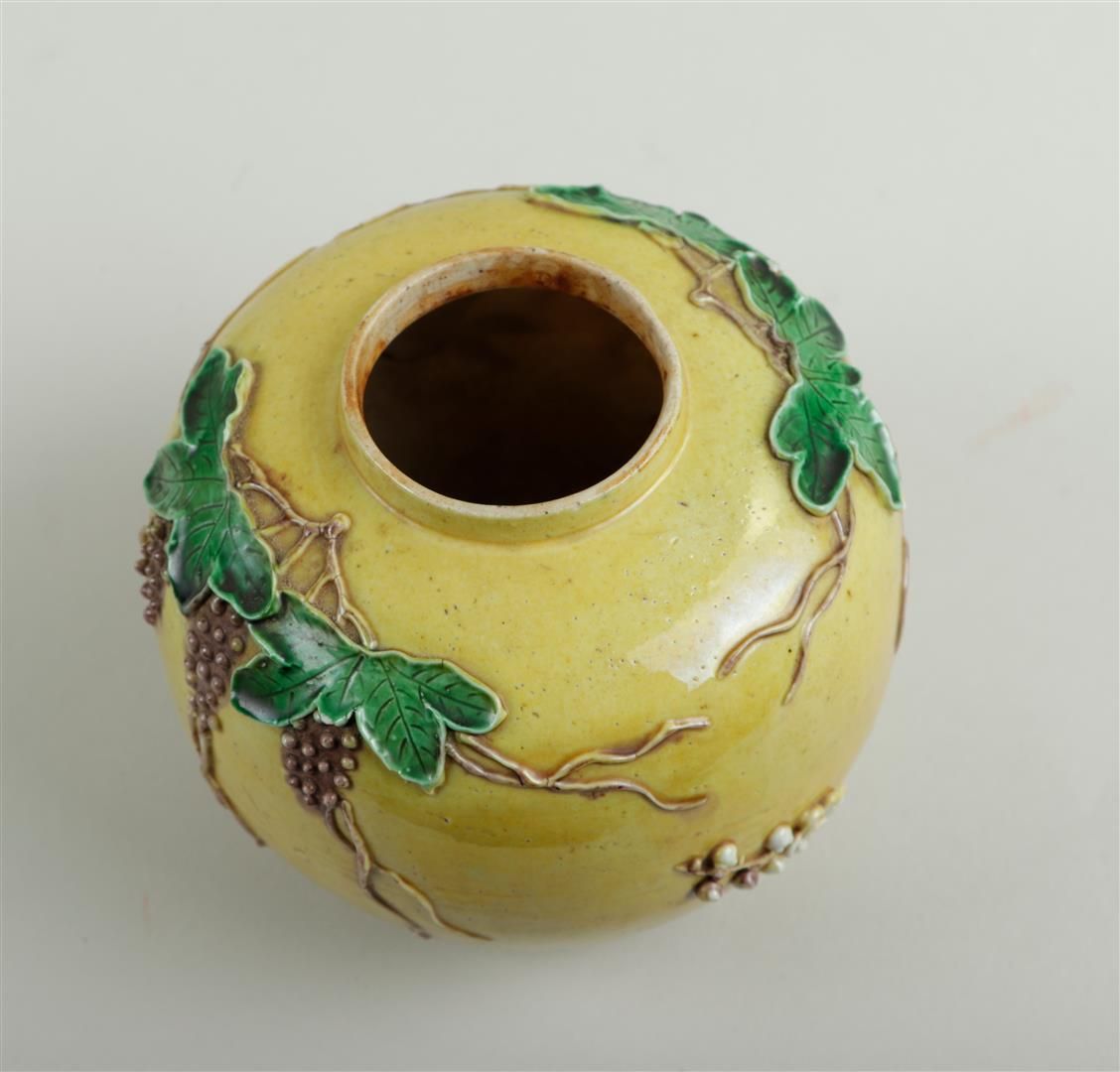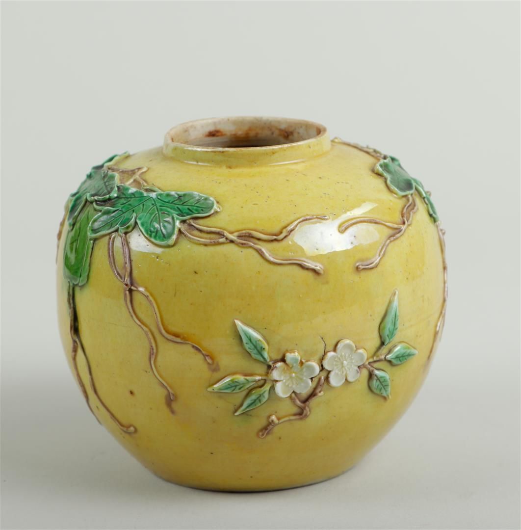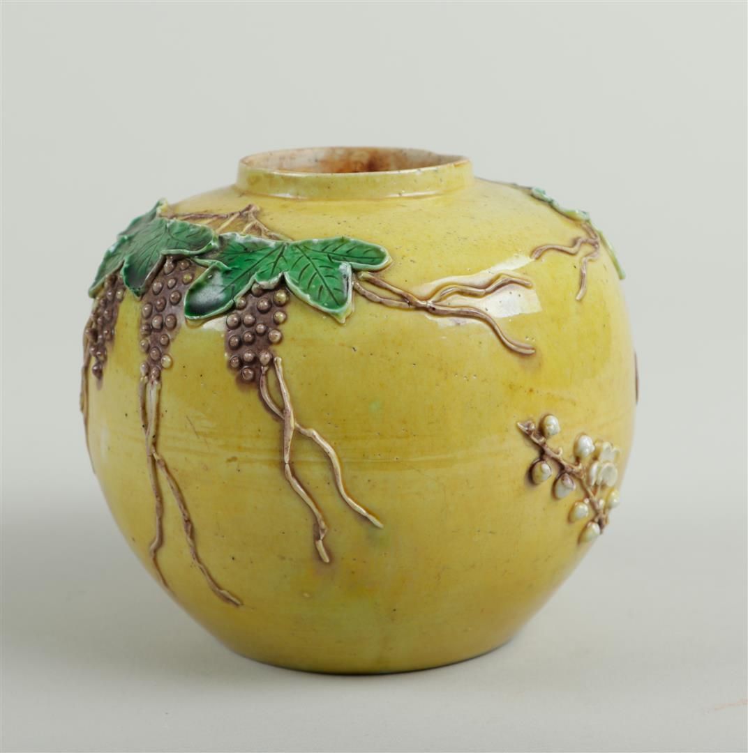 A wang bing rong ginger jar decorated with grape vines and prunus. China,...