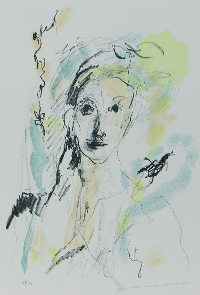 Treccani Ernesto Ragazza, 1995 litografia su carta, cm. 50x35, es. 97/120 firmata in basso a destra, timbro a secco ST in basso a sinistra, etichetta dell'Associazione per la diffusione dell'opera artistica al retro senza cornice