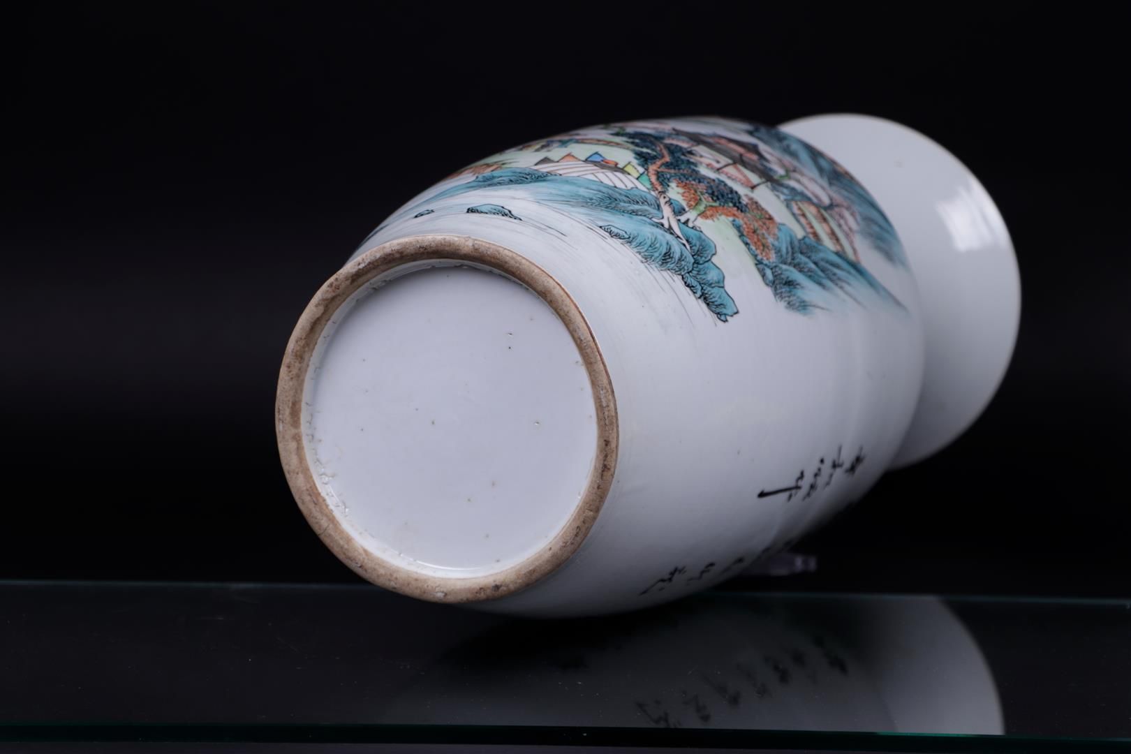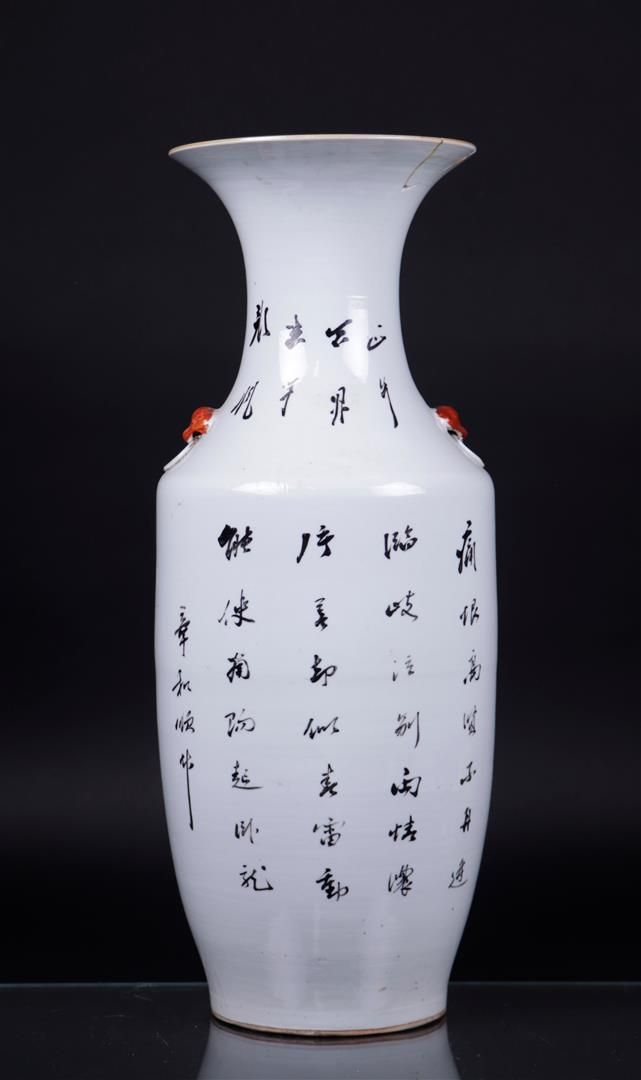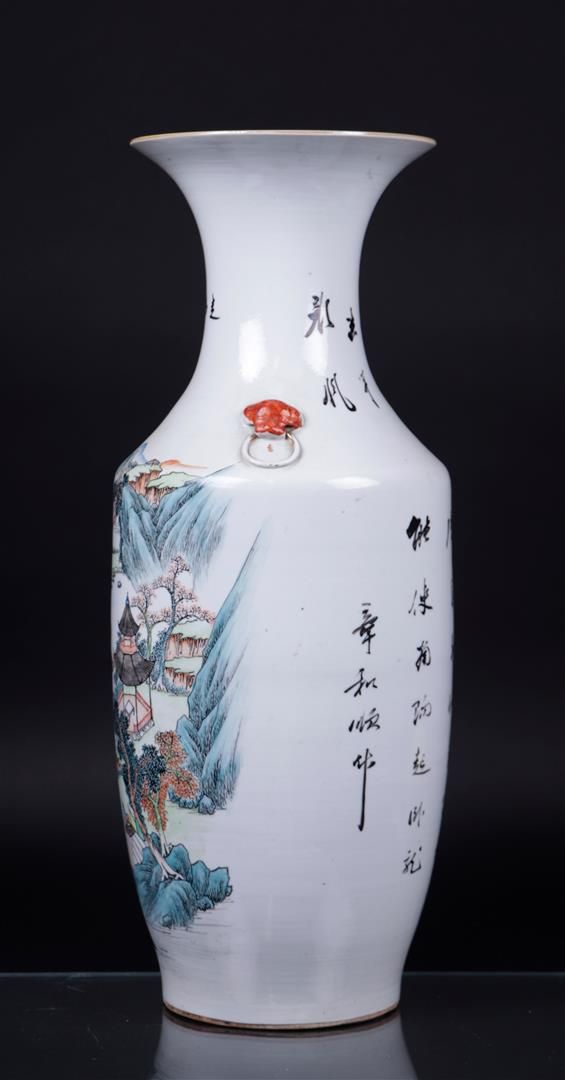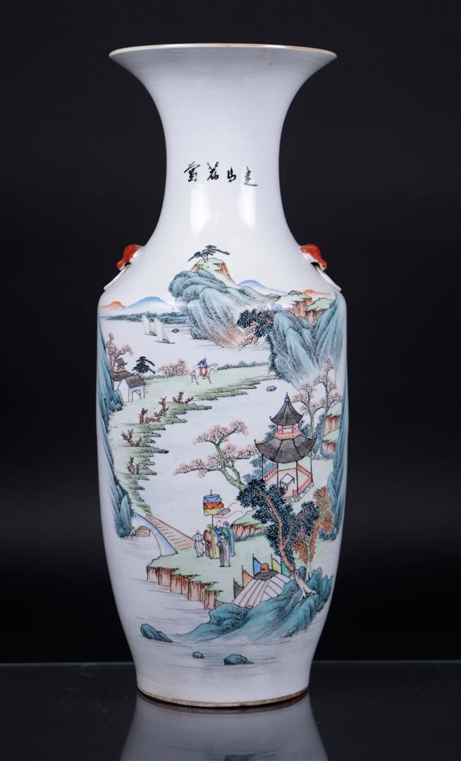 A large porcelain baluster vase with landscape decor and characters on the reverse. China, 19th century.