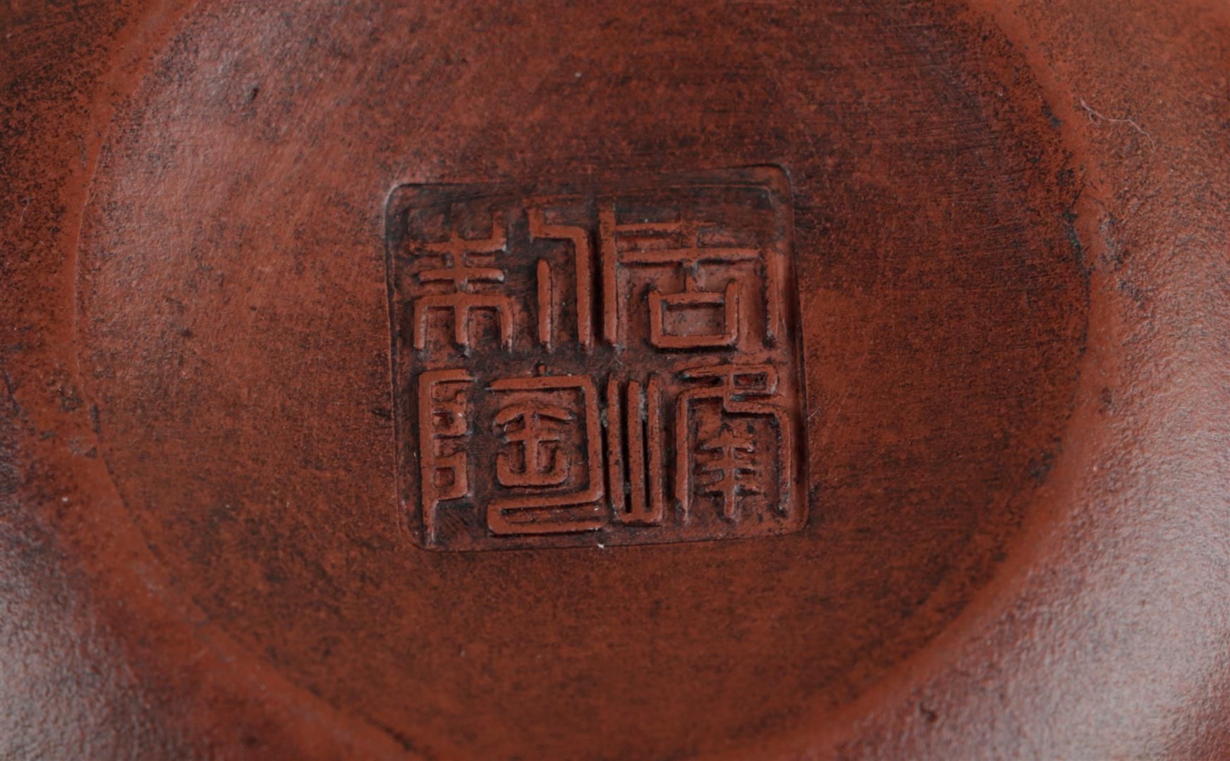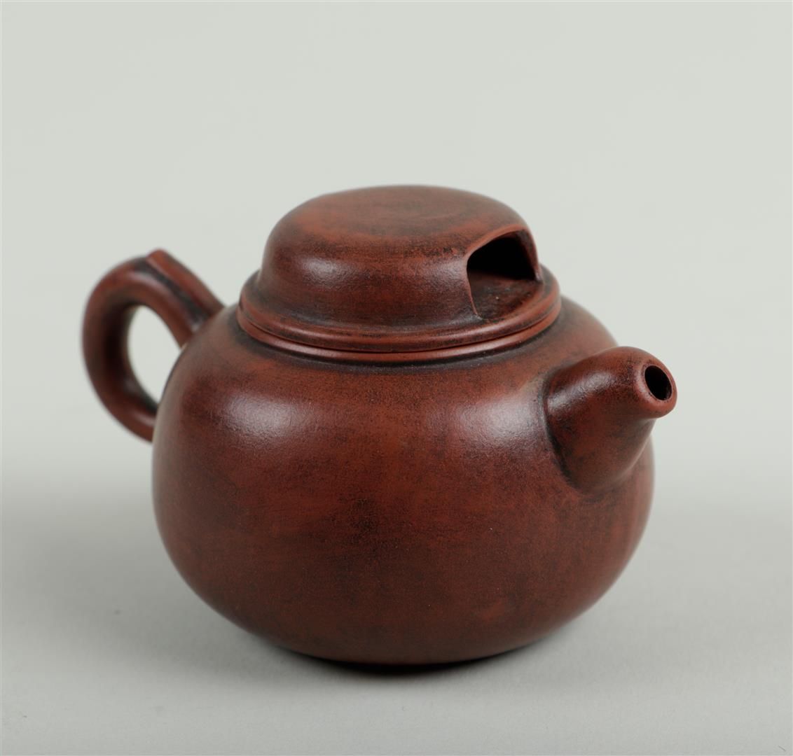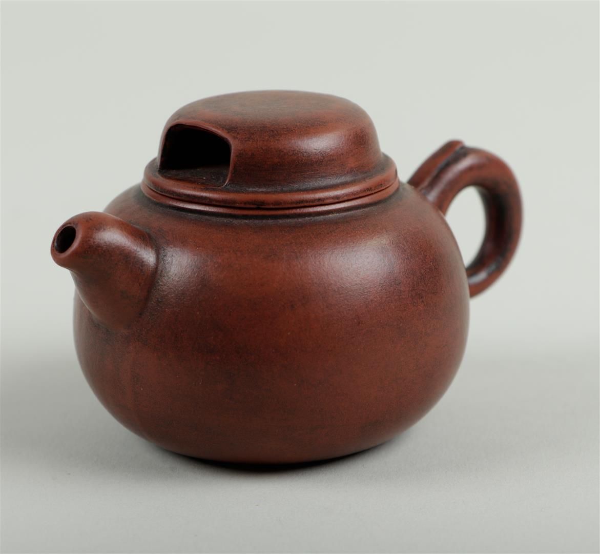 A Yixing teapot, marked on the urn, handle and inside of lid. China, circa 1900.