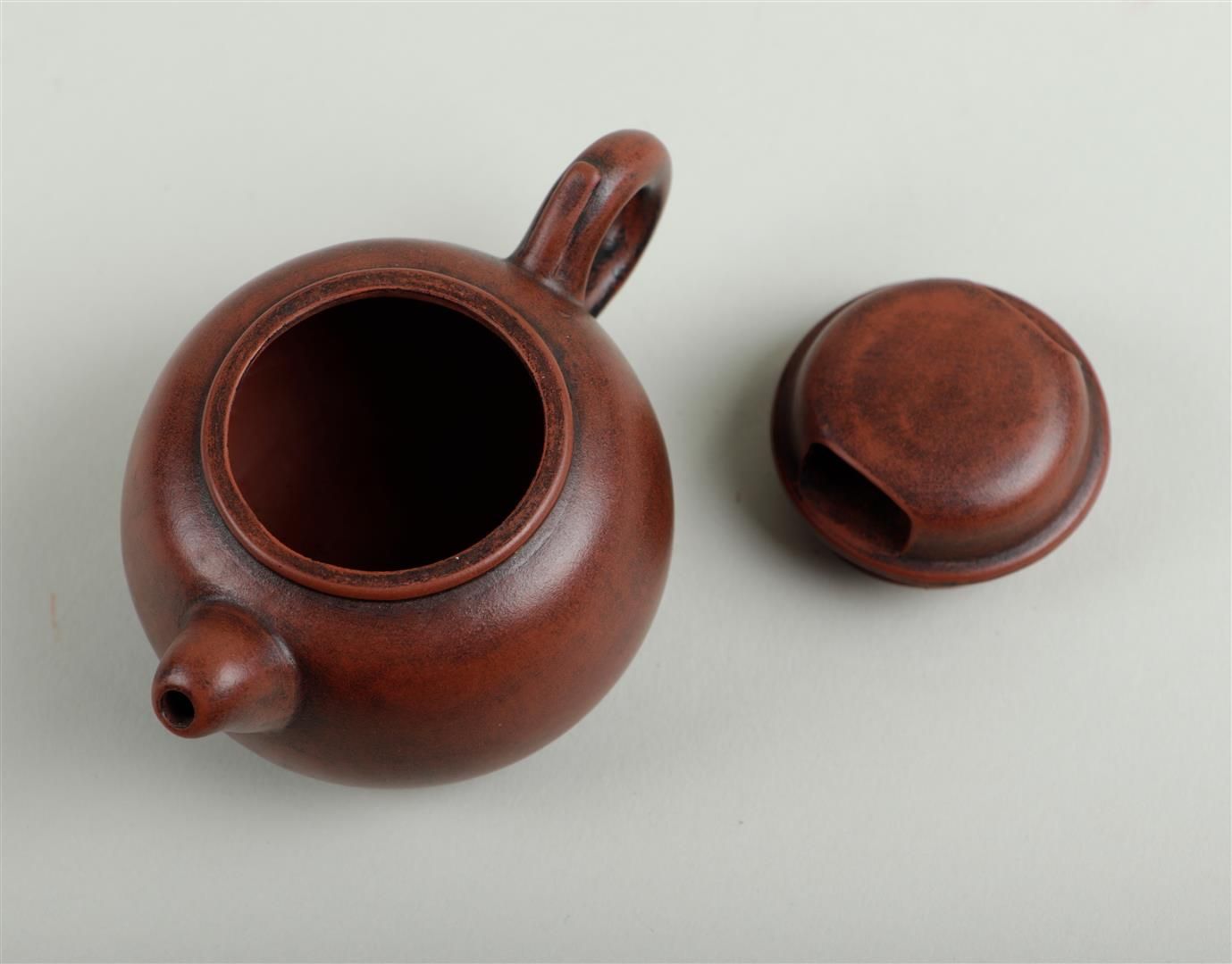 A Yixing teapot, marked on the urn, handle and inside of lid. China, circa...