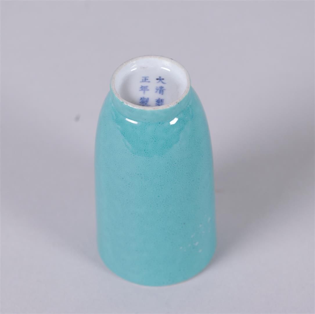 A green glazed high cup, marked Yongzheng. China, 20th century.H. 9 cm.