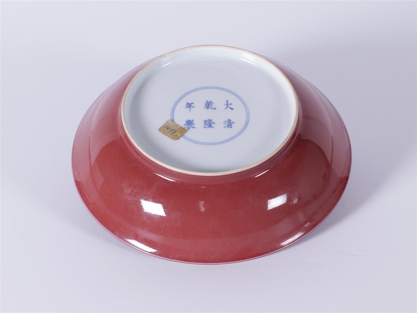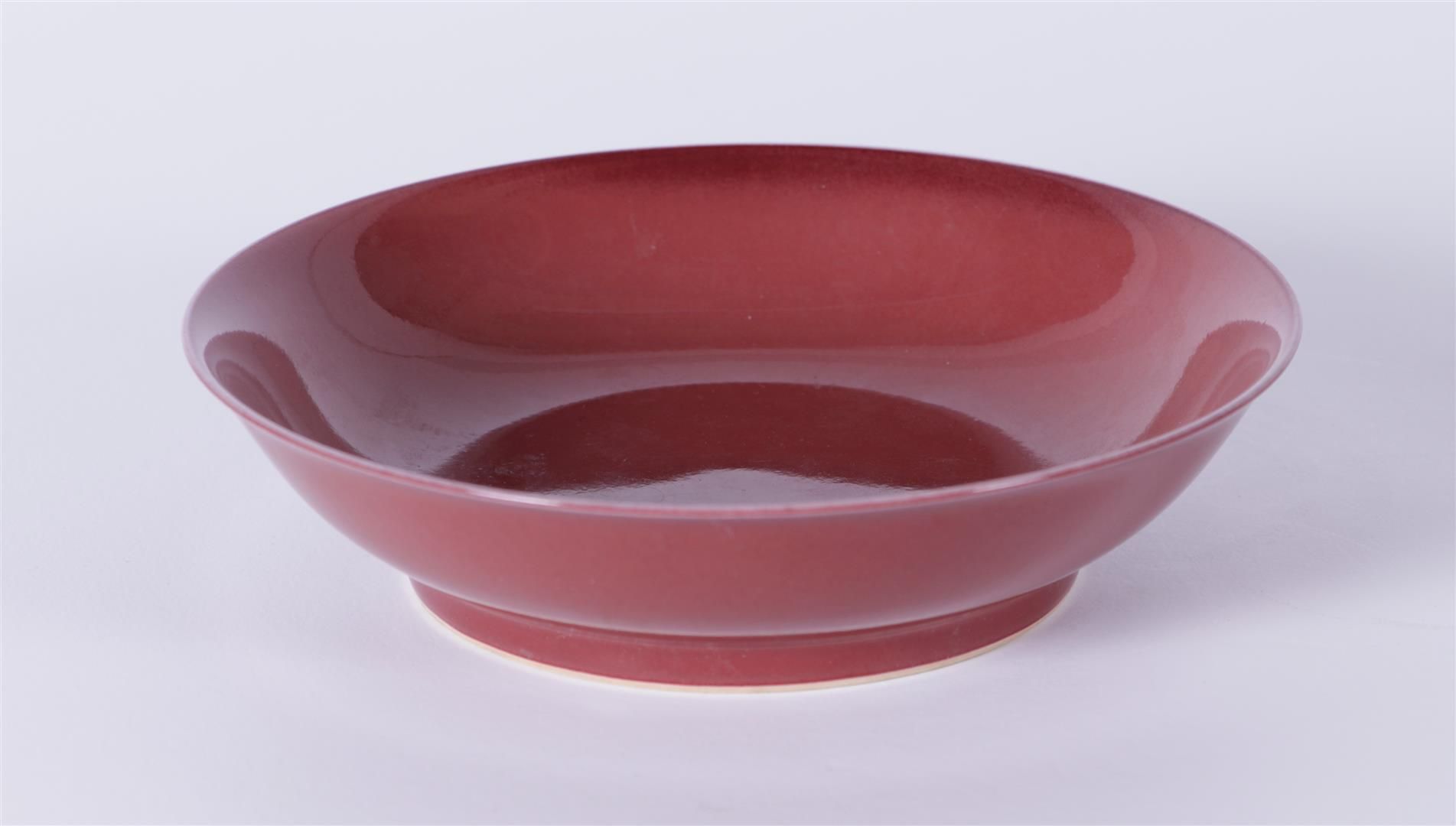 A sang de boeuf bowl, marked Qiangling. China, 20th century.Diam. 19 cm.
