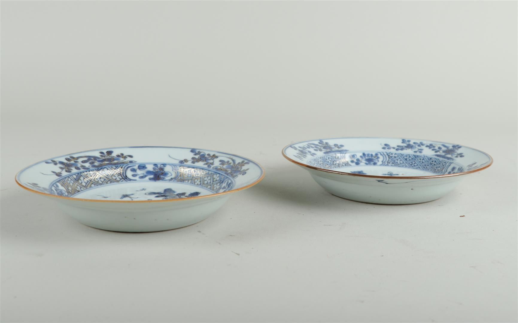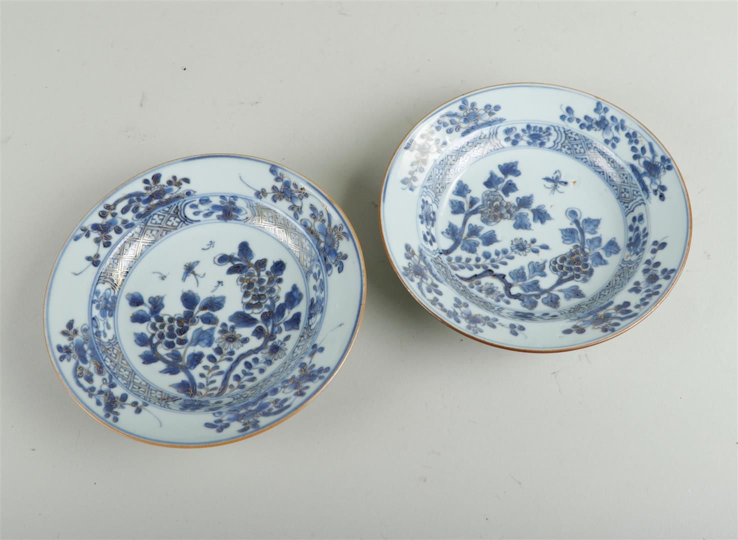 A set of two porcelain plates with floral decoration and gold-worked overglaze. China, 18th century.