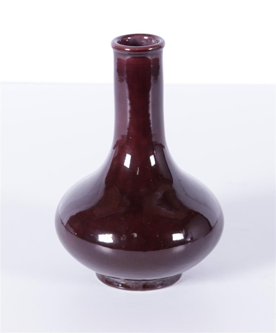 A brown glazed stem vase, marked Qiangling. China, 19/20th century.H. 17 cm.