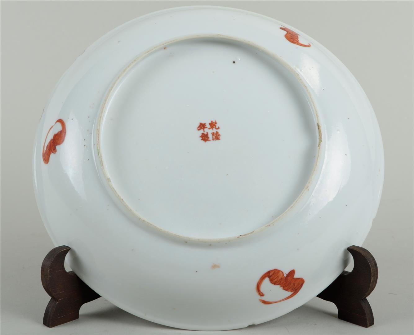 A Famille Rose dish decorated with flowers and antiques.Diam. 24 cm.