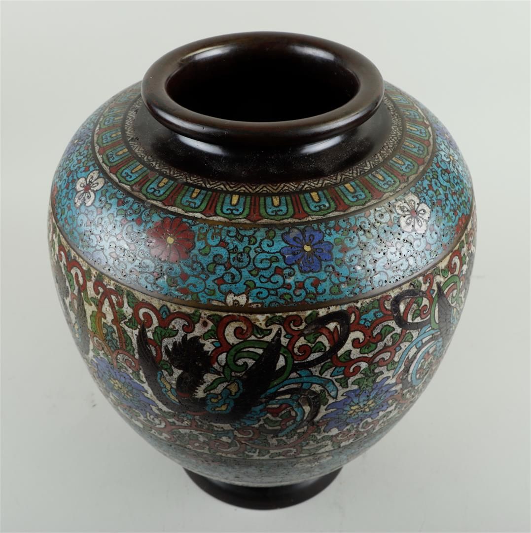 A large bronze cloisonne vase with floral decoration. Japan, 18th century.H....