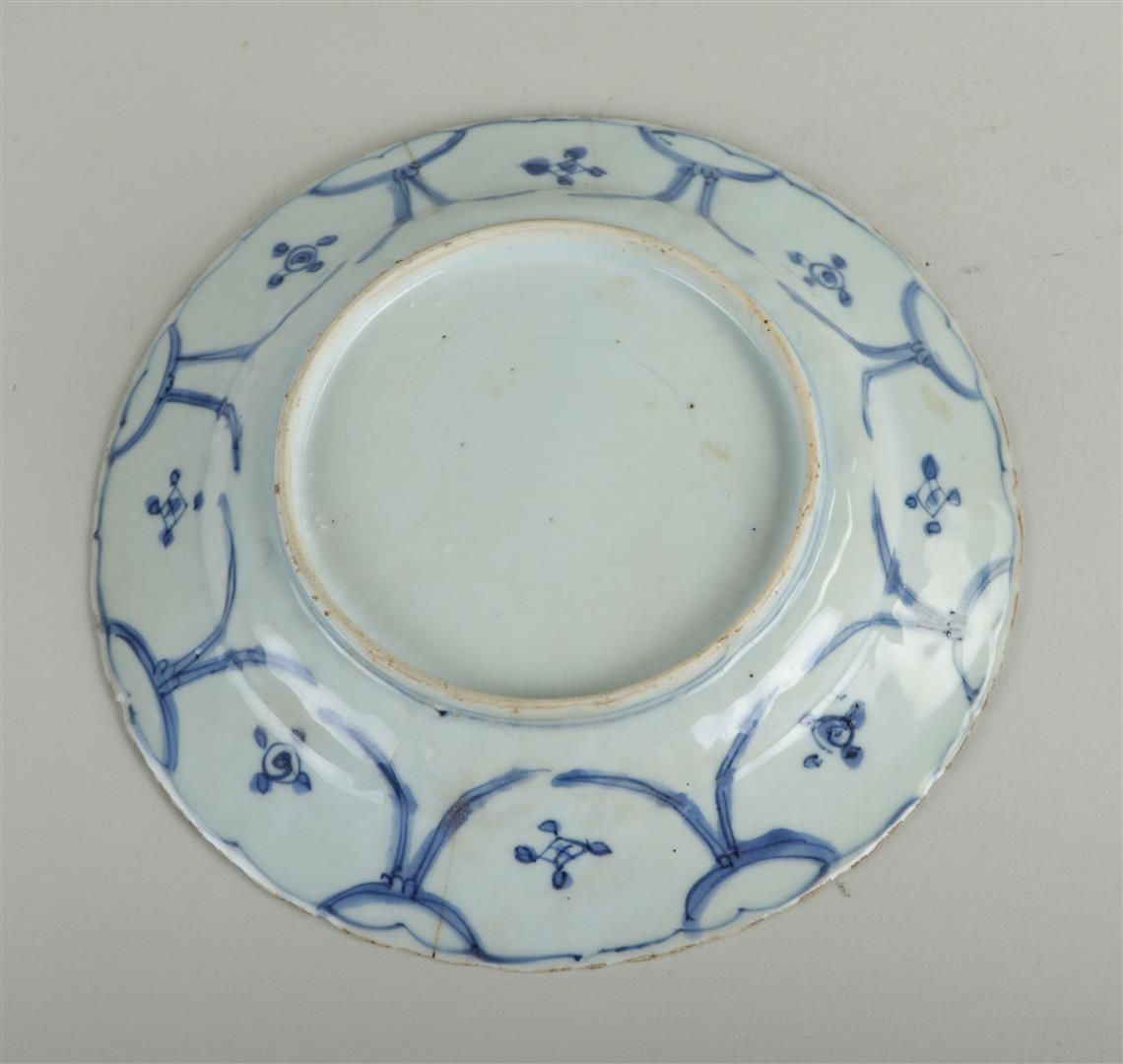 A porcelain 'kraak' plate decorated with a deer. China, Wanli. Hairlines.