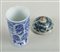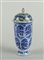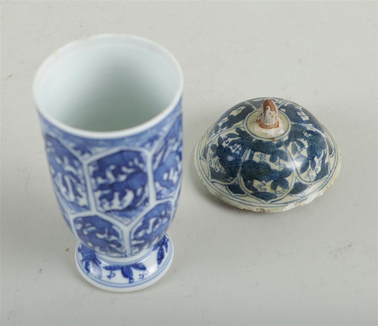 A porcelain bell-shaped covered vase with floral decoration in borders. China, Kangxi.