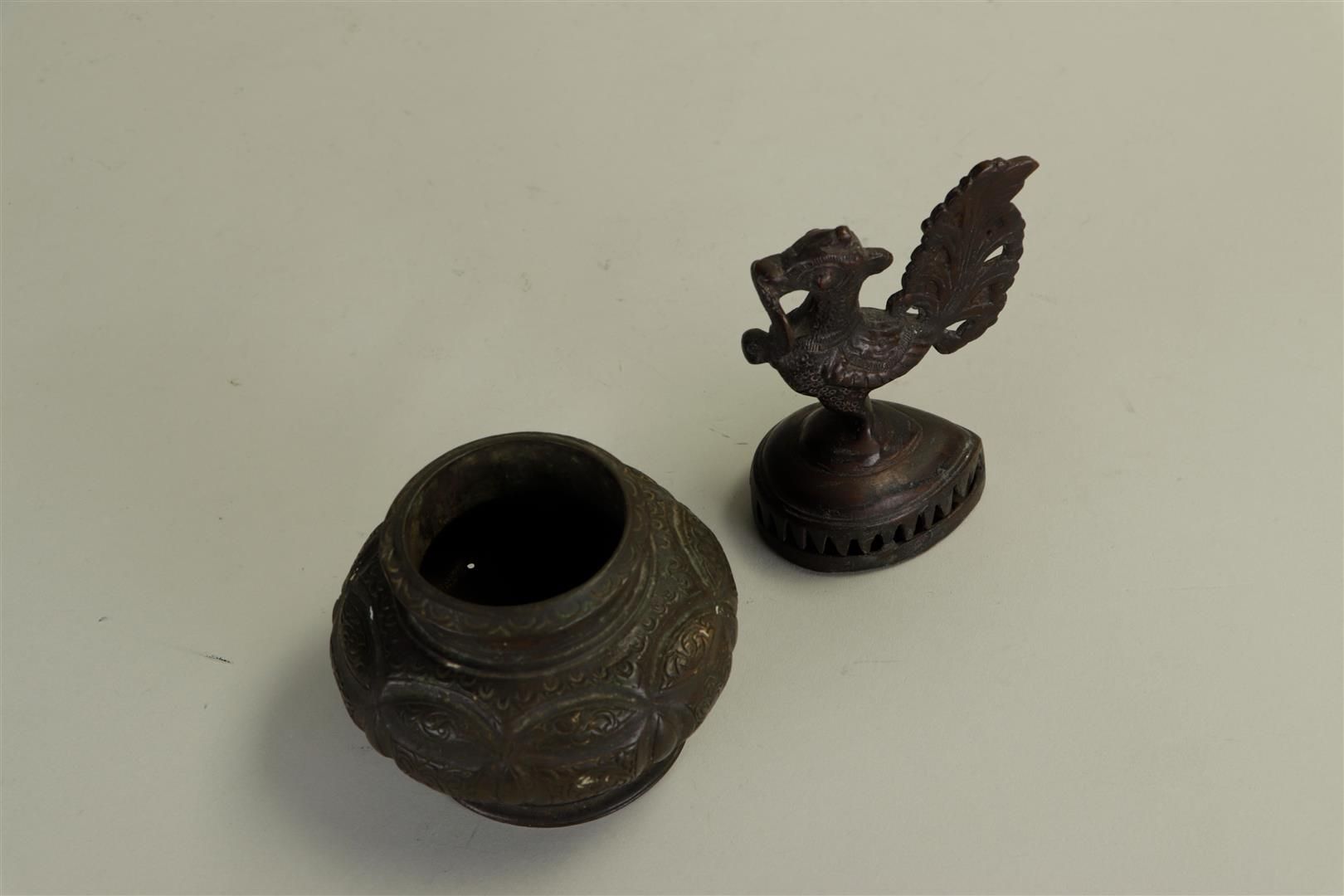 A lot consisting of two bronze Asian objects including an incense pot and a...