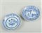 Collection porcelain, 4x various saucers floral, 1x with figures and two cups various. China, 18th / 19th century. One saucer restored, chips.