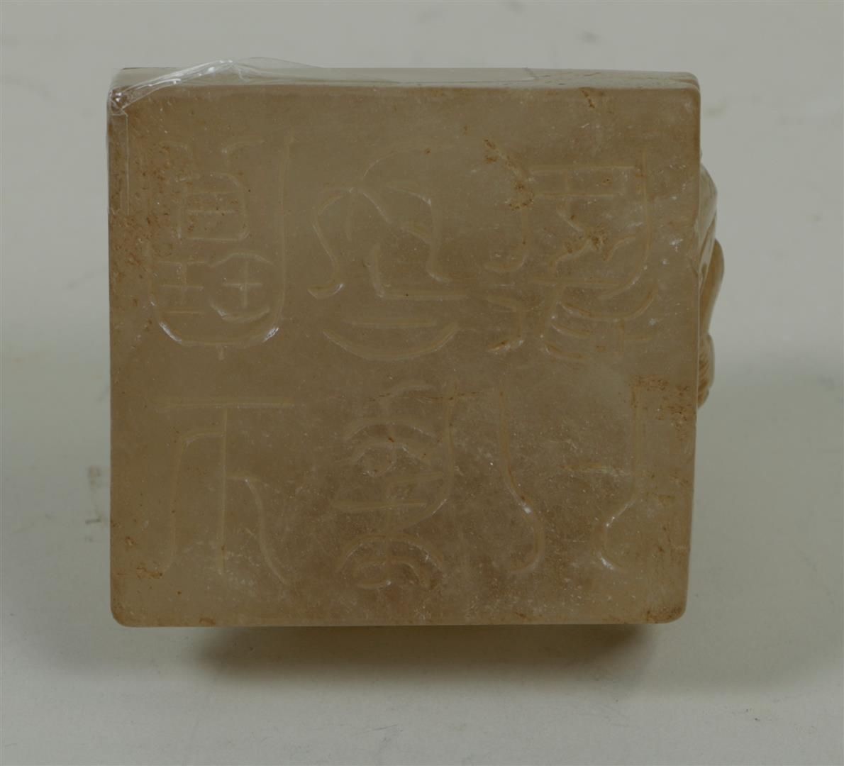 Lotto 2157 | A smoky quartz/rock crystal cutout of a mythical creature attacked by dogs,