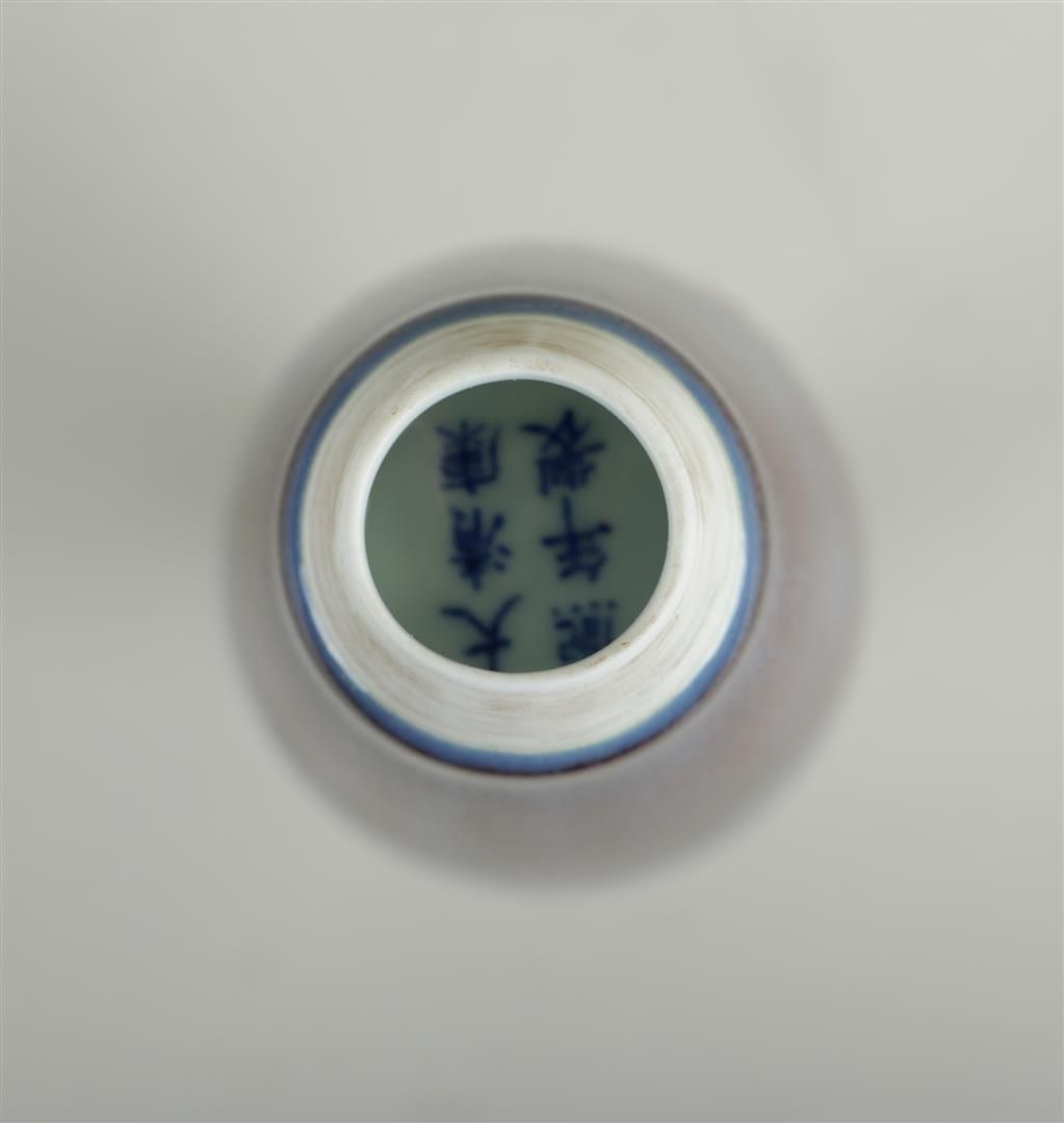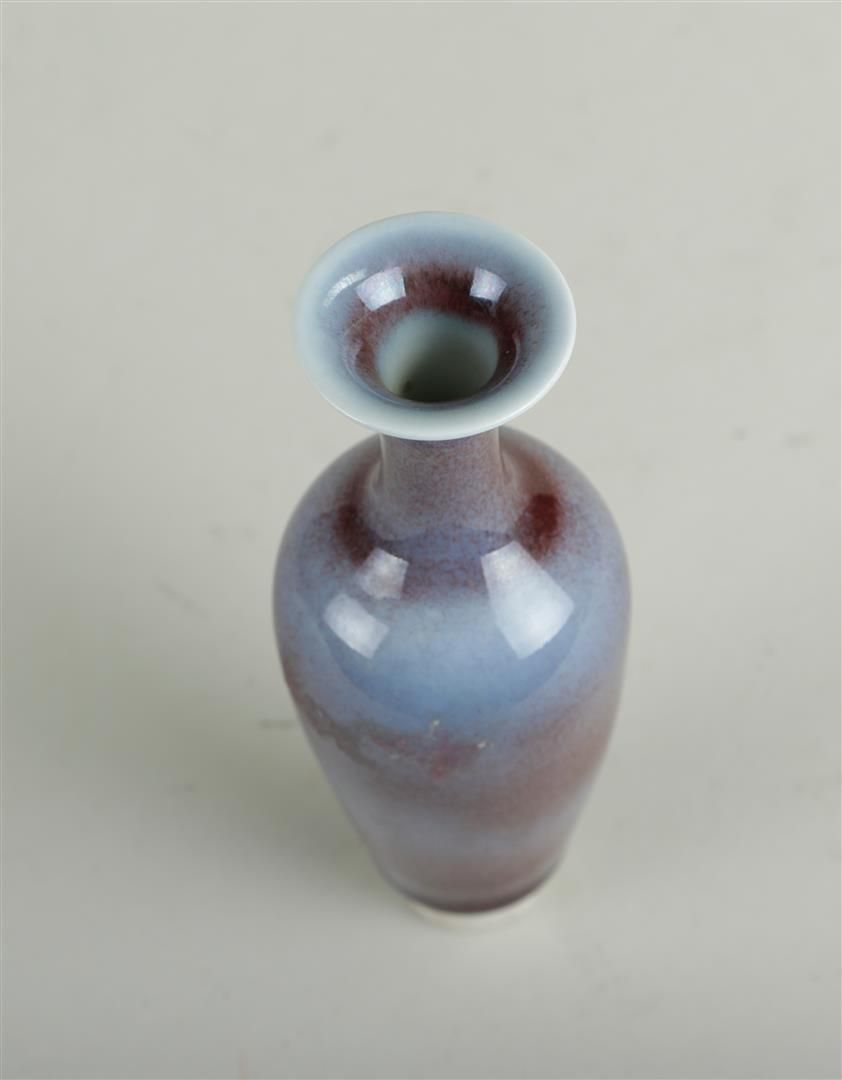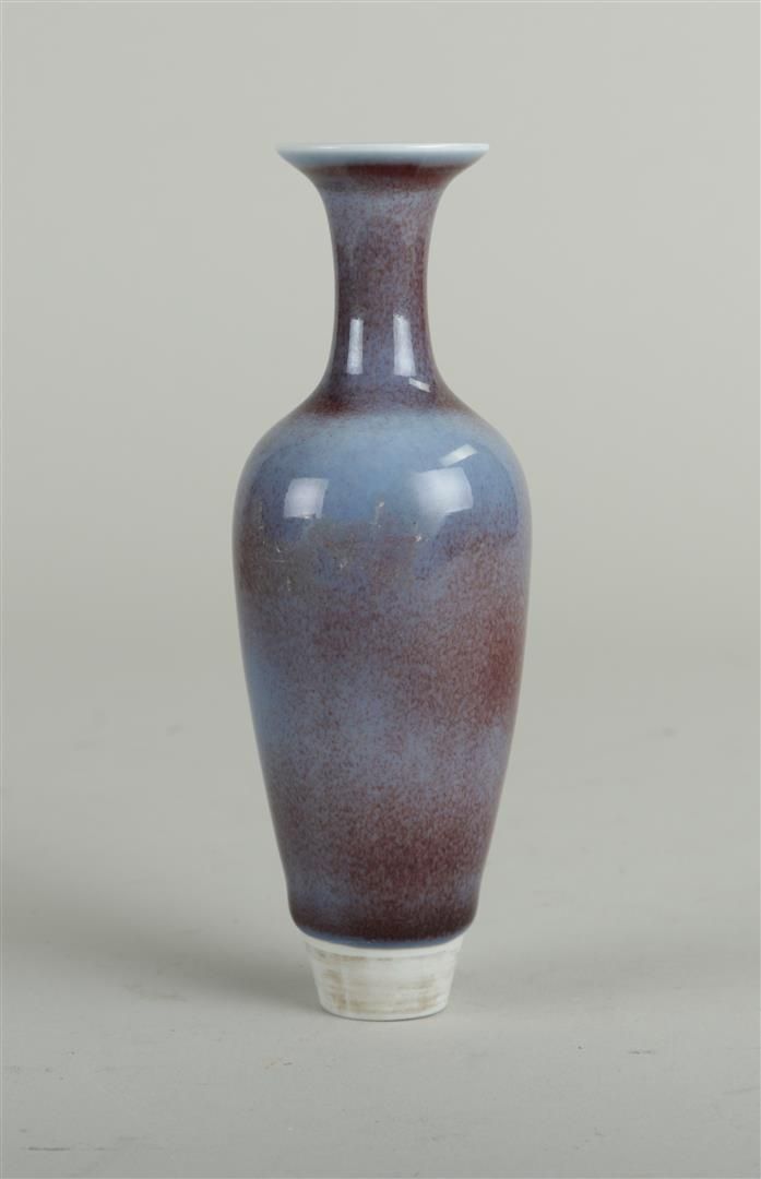 A porcelain sang de bouef collar vase and stand, marked Kangxi. China, 20th...