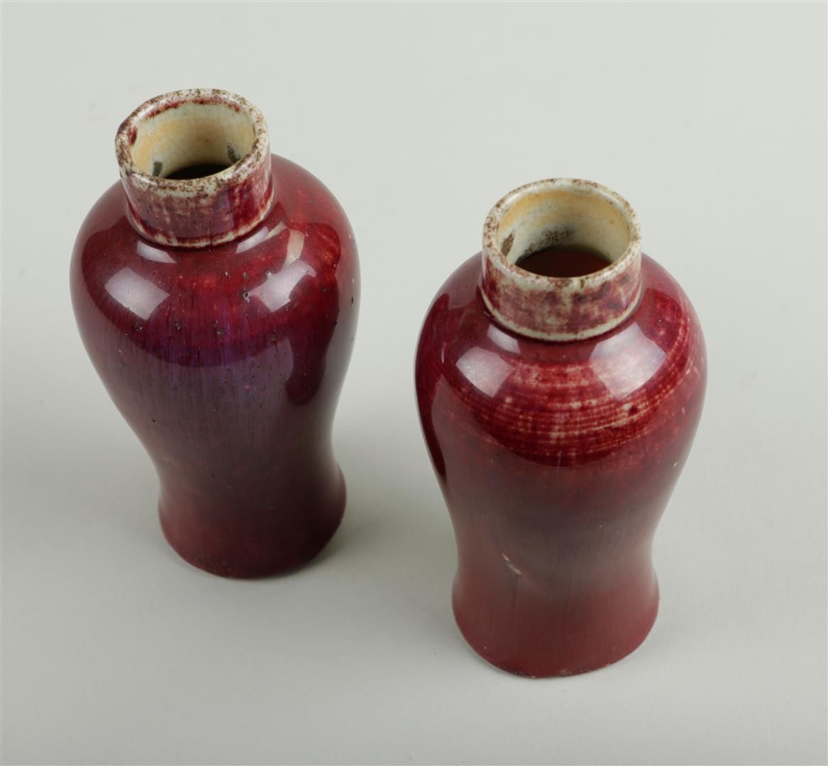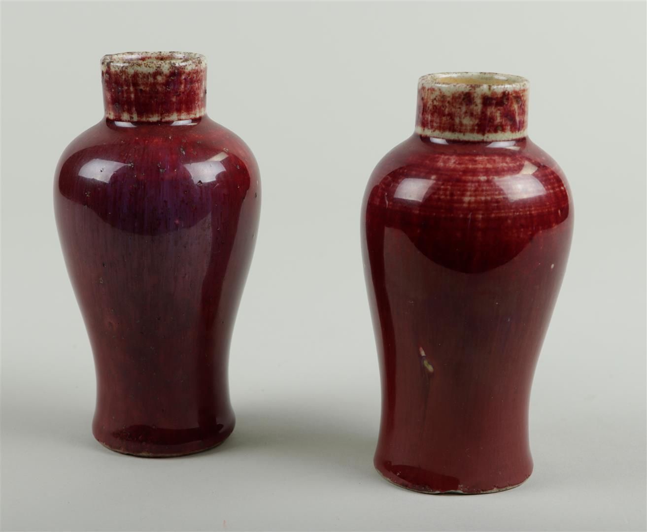 Two Sang de boeuf baluster vases. China, 18th century.H. 13,5 cm.