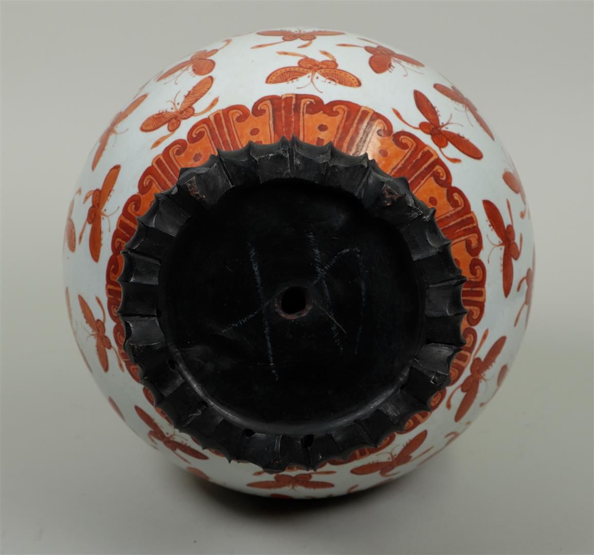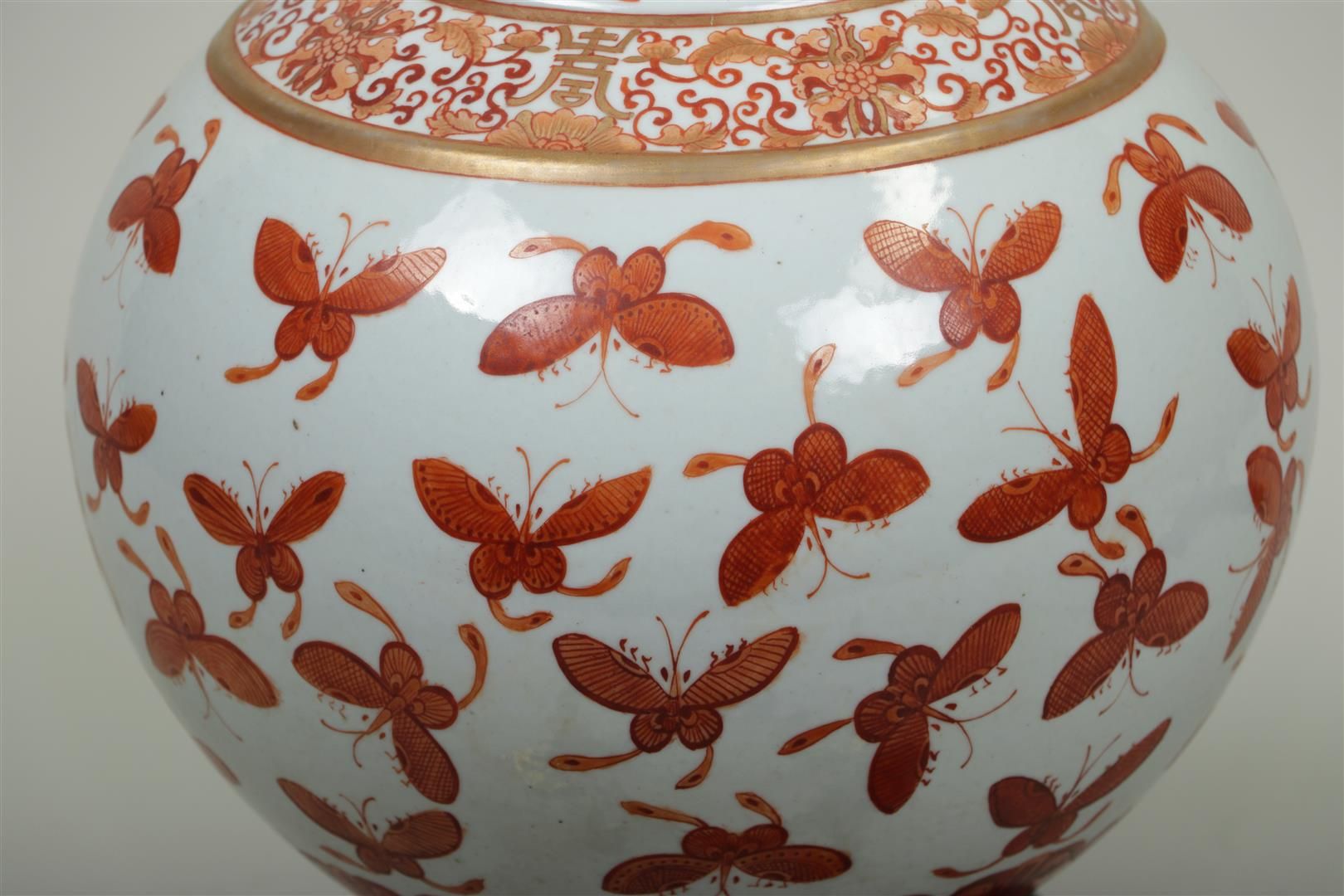 A porcelain iron red decoration of butterfly converted into lamp base. China,...