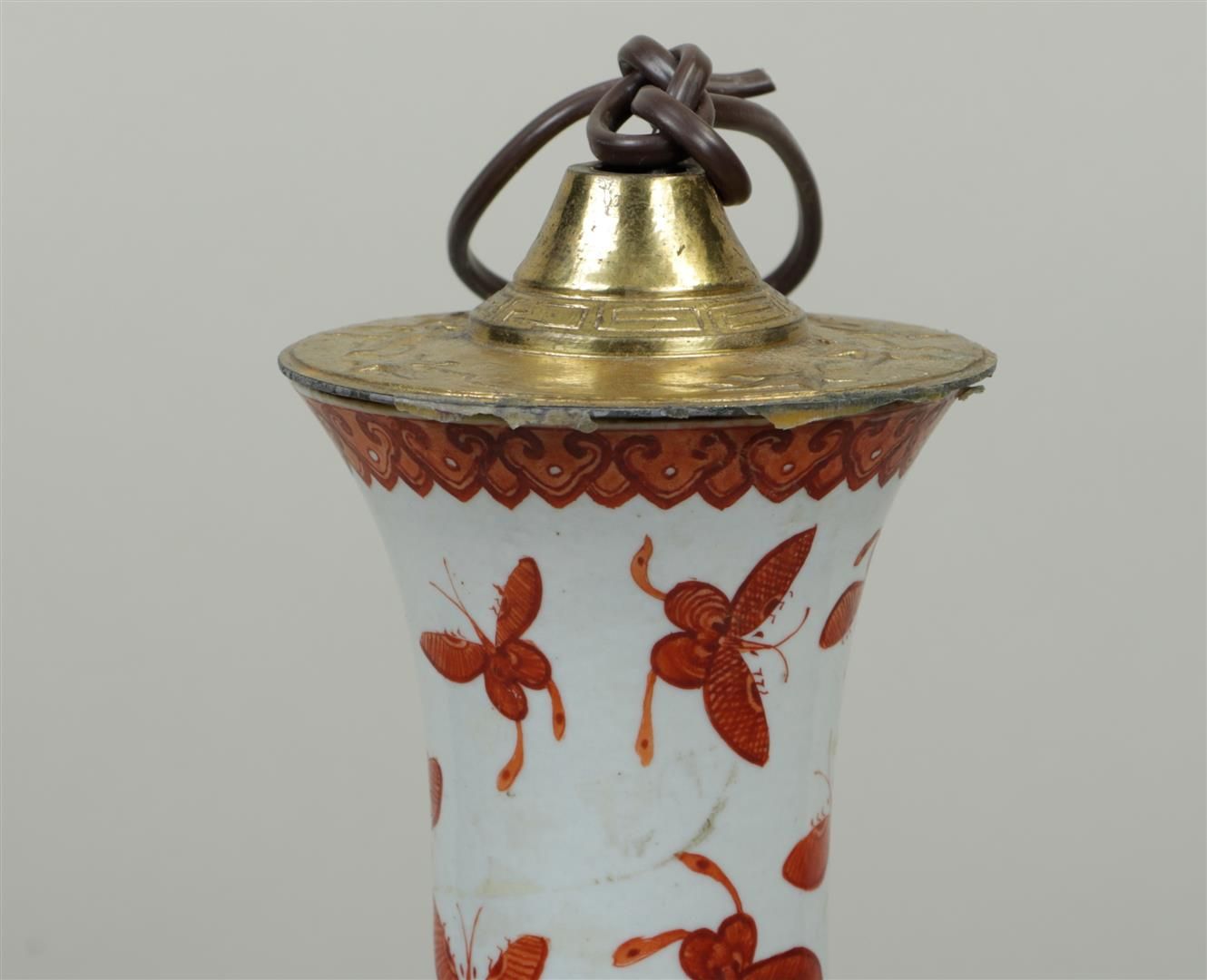 A porcelain iron red decoration of butterfly converted into lamp base. China, 19th century.